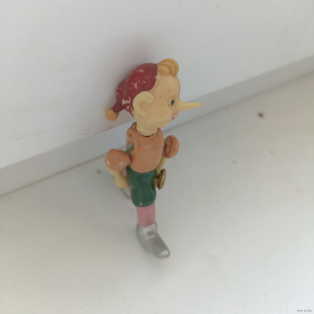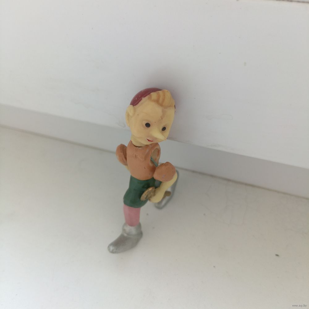 Советская игрушка, кукла «Буратино и золотой ключик» на резинках, колкий пластик, 1950-60 гг., резинки с годами ослабли.