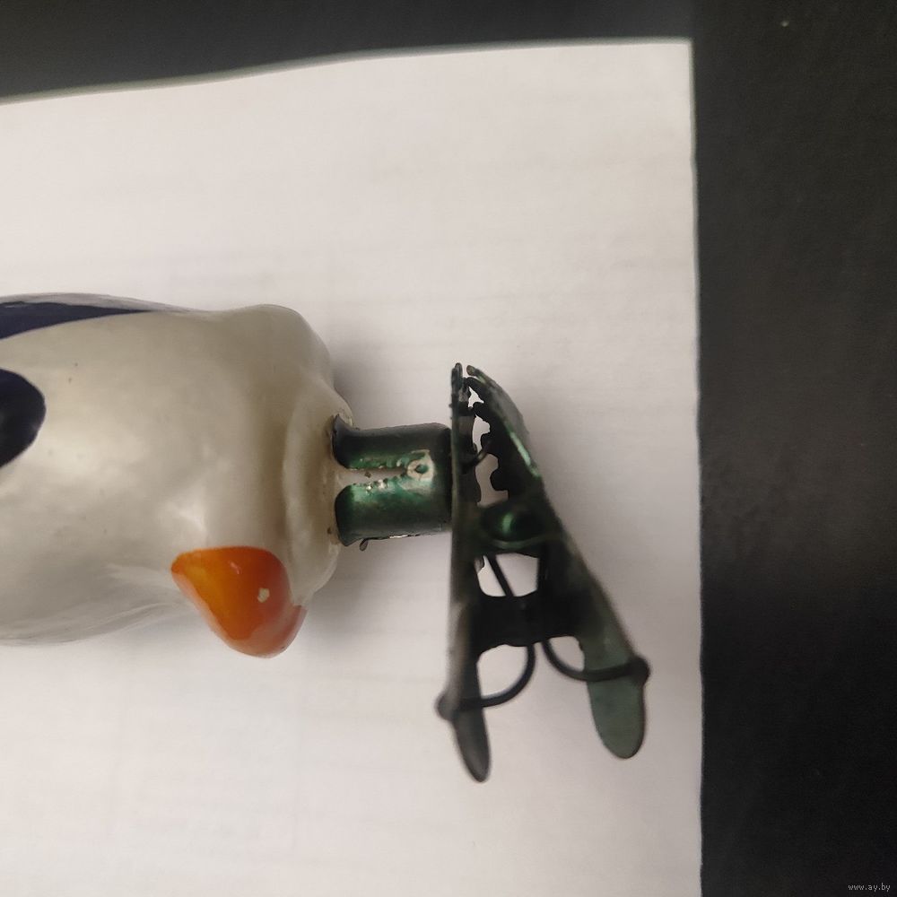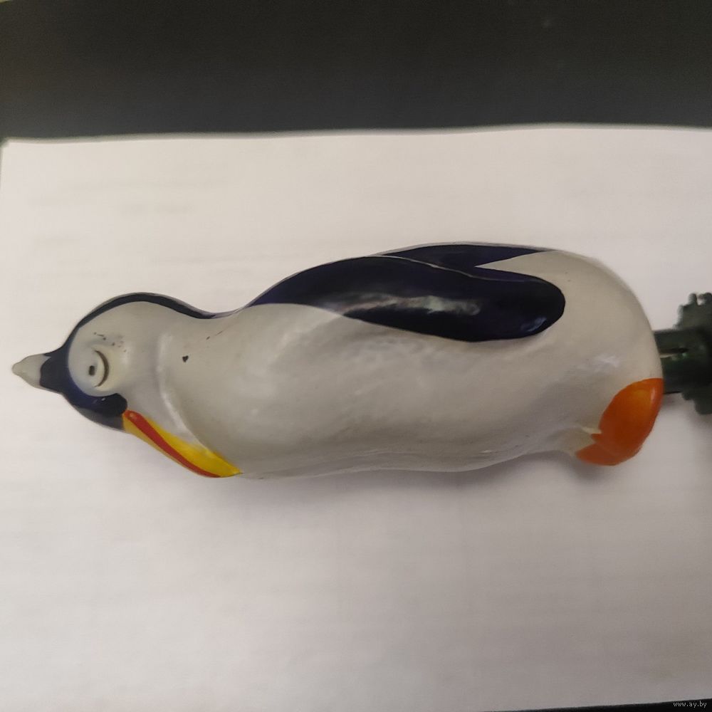 Игрушка елочная "Пингвин" СССР 50-е годы, целая без реставраций, "с чердака", с "прищепкой", не частая, состояние на фото