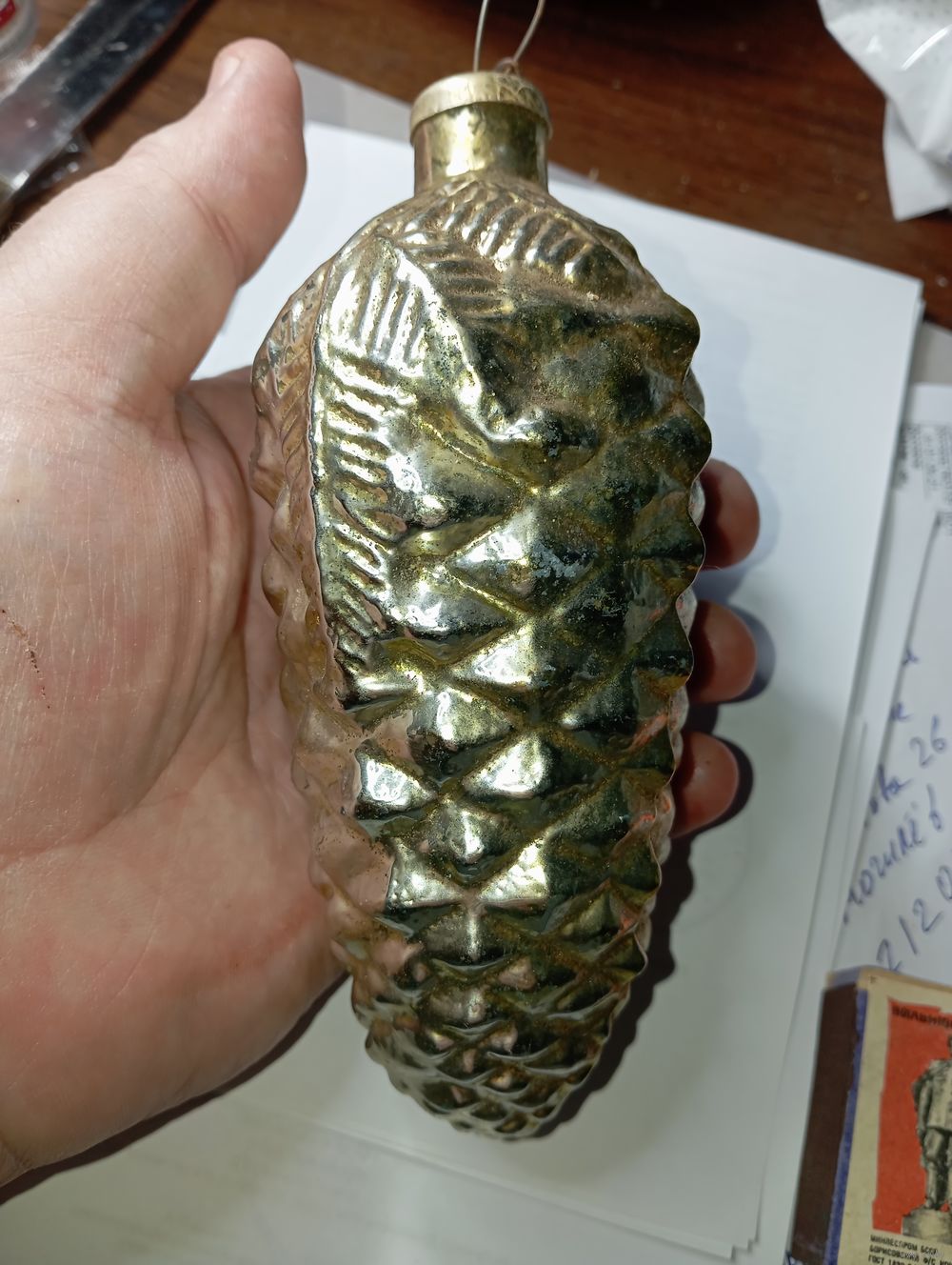 Игрушка на ёлку , Большая Шишка , толстое стекло , винтаж , СССР .