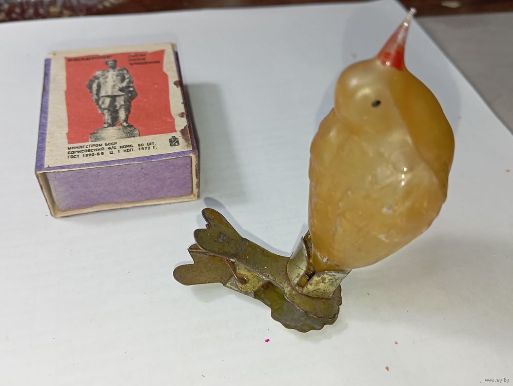 Игрушка на ёлку Птица ( из набора птиц и животные ) , винтаж , стекло , СССР . С 20 рублей