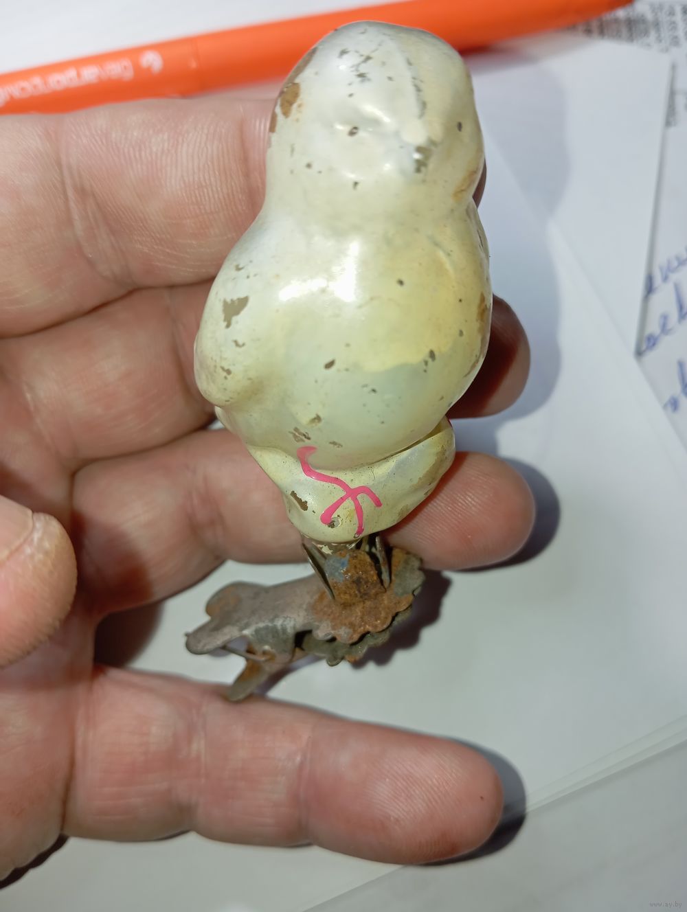 Игрушка на ёлку , Воробей , винтаж , стекло , СССР .