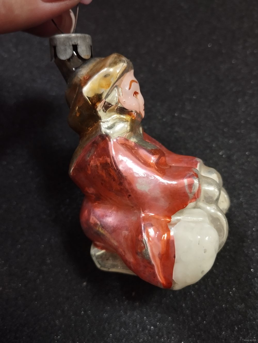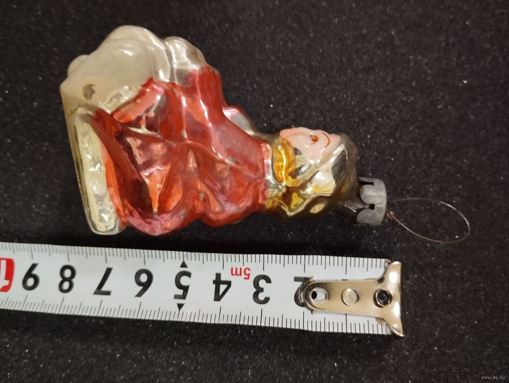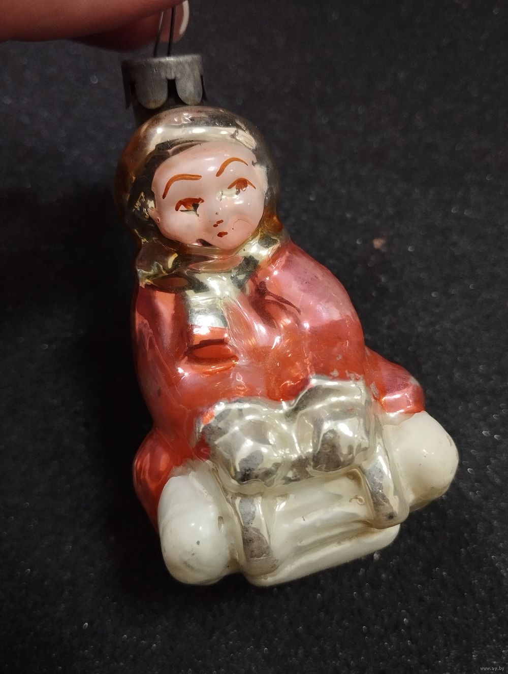 Игрушка ёлочная Мальчик на санях, стекло. СССР