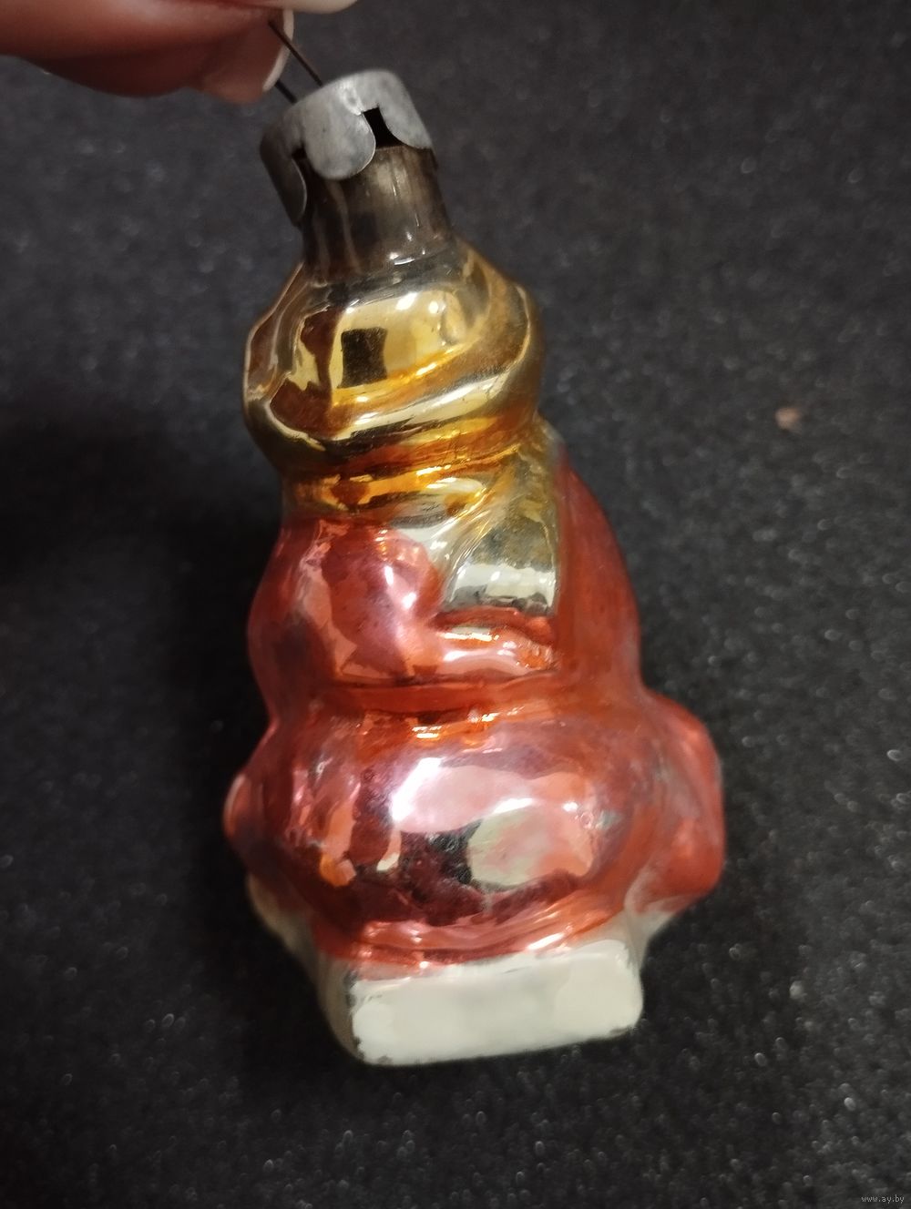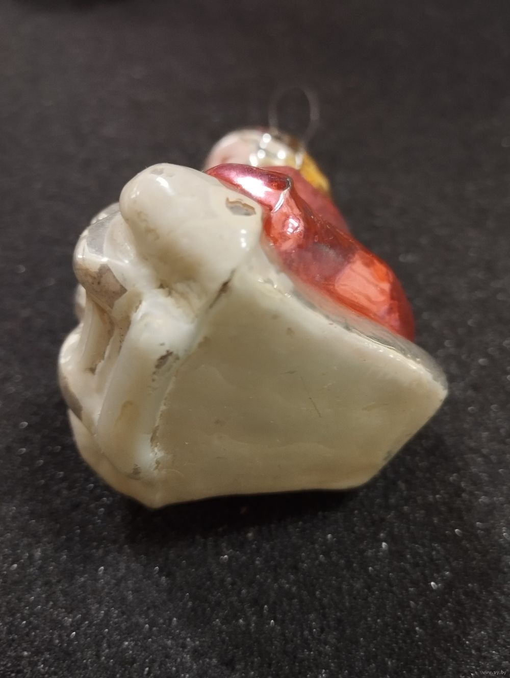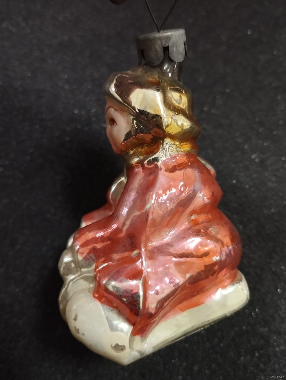 Игрушка ёлочная Мальчик на санях, стекло. СССР