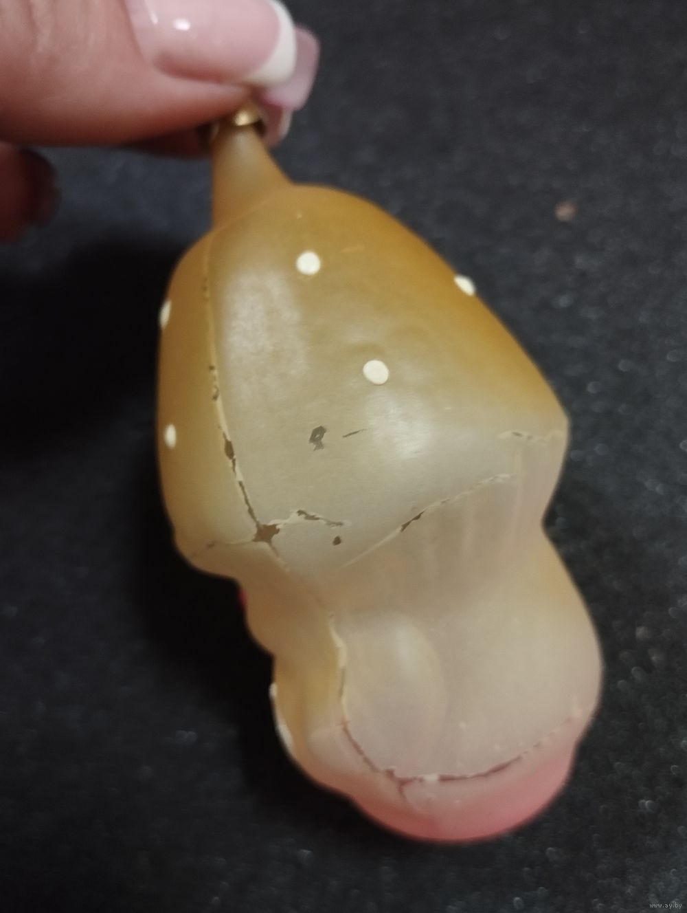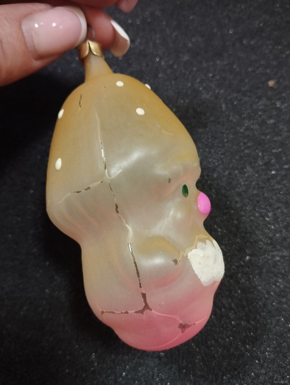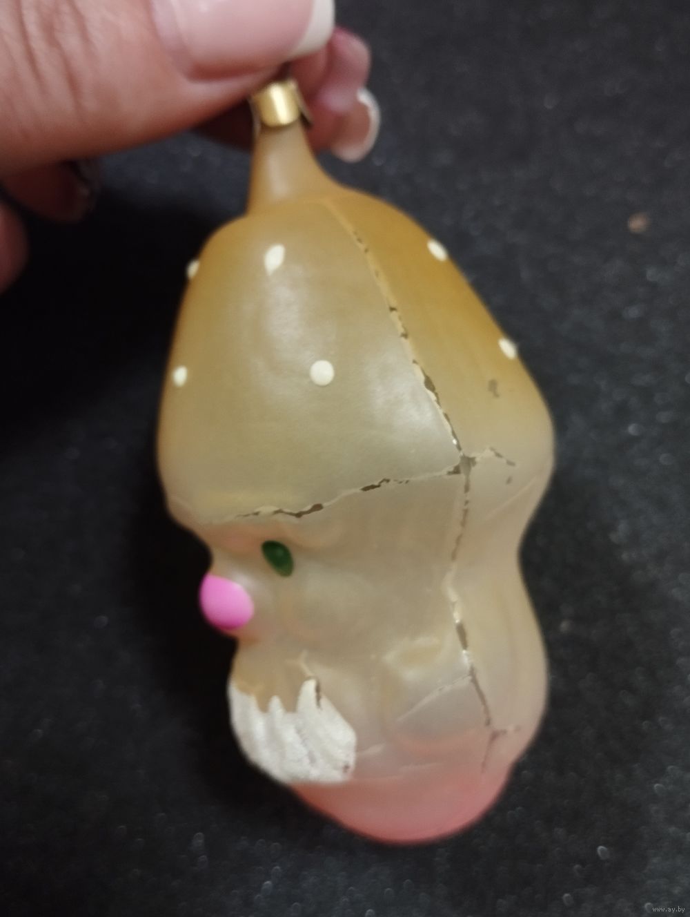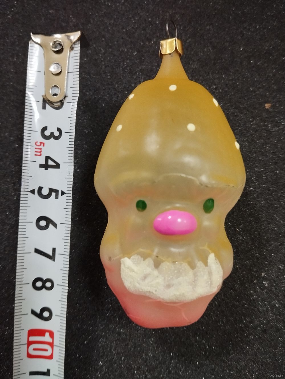Игрушка ёлочная Старичок Грибочек, стекло. СССР