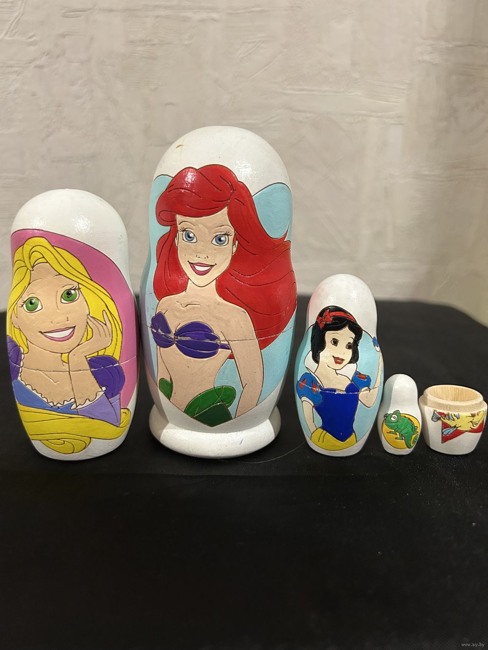 Разные фигурки из популярных мультфильмов коллекция миниатюр, машинка красная, Disney матрешки Ариэль, Белоснежка…