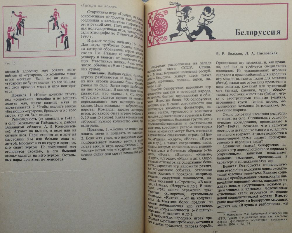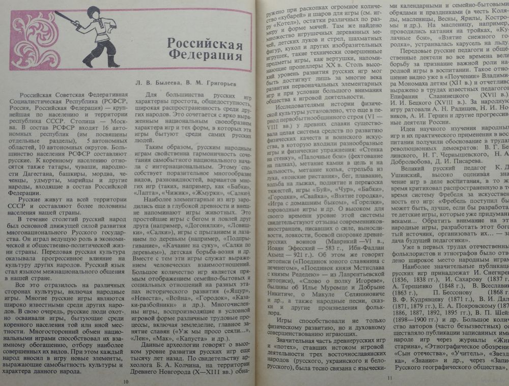 Большой энциклопедический формат. Ляссе. 272 стр. В книгу включено свыше 400 народных подвижных игр. В ней впервые представлены народные подвижные игры всех союзных и автономных республик страны. Более 50 специалистов участвовали в отборе игр.