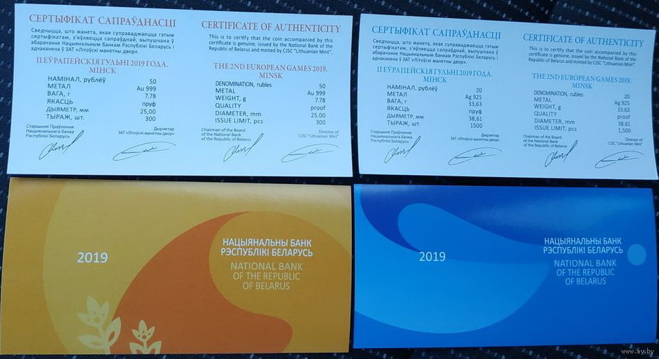 Памятные монеты "II Еўрапейскія гульні 2019 года. Мінск" ("II Европейские игры 2019 года. Минск")