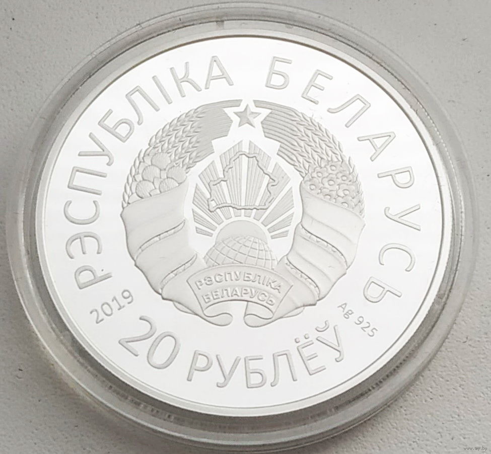 в центре – рельефное изображение Государственного герба Республики Беларусь, по кругу надписи: вверху – РЭСПУБЛІКА БЕЛАРУСЬ; внизу: 50 РУБЛЁЎ (на золотой), 20 РУБЛЁЎ (на серебряной) и 1 РУБЕЛЬ (на медно-никелевой), год чеканки (на золотой и серебряной проба сплава).