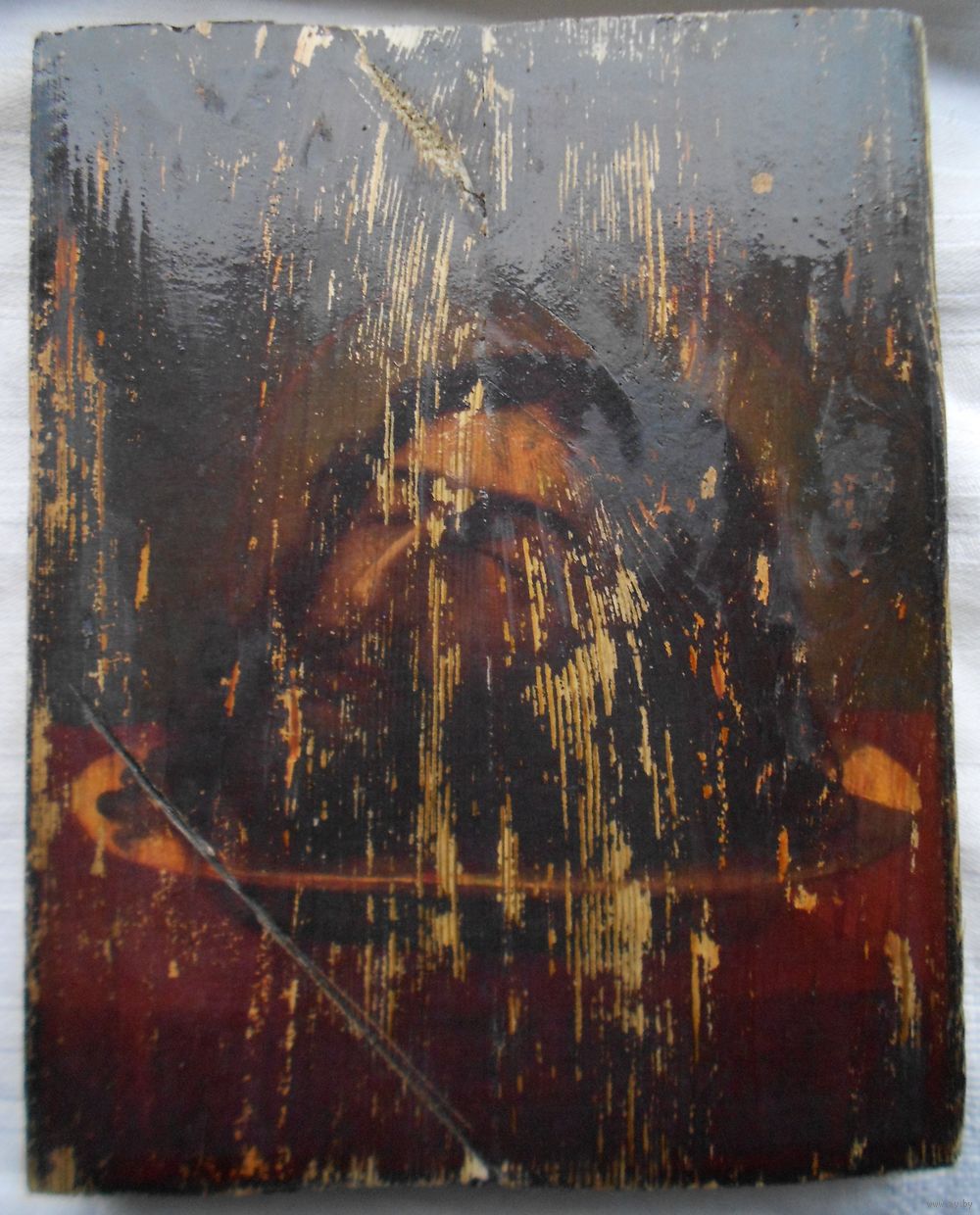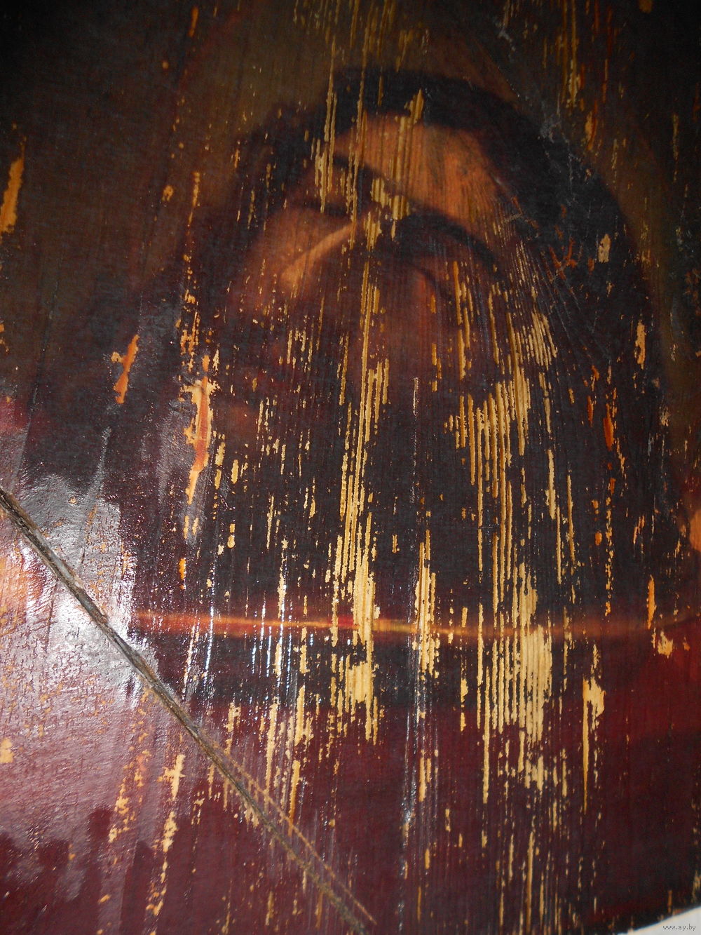 икона деревенская на дереве размер 25 см на 20 см много повреждений