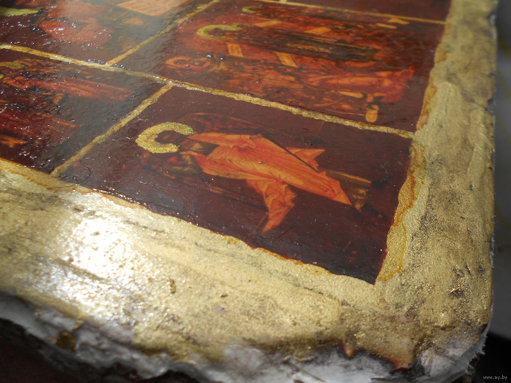 икона на дубе покрытом левкасом размер 26 см на 27 см толщина 3 см