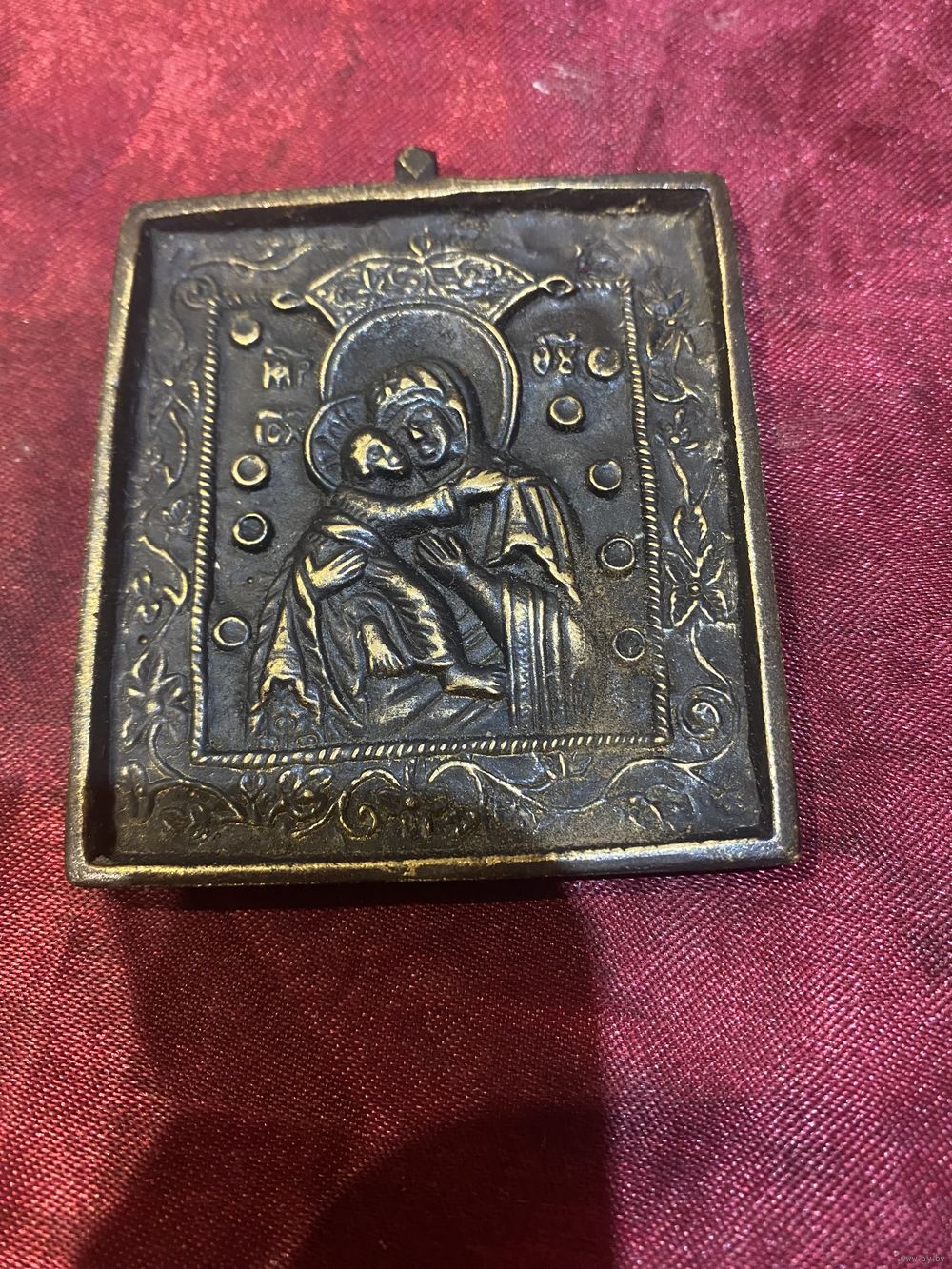Икона «Богоматерь» редкая с короной бронза,размером 5,4смх6см