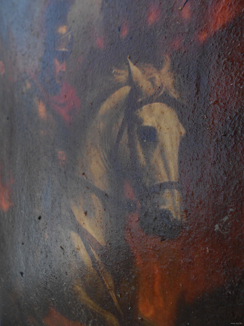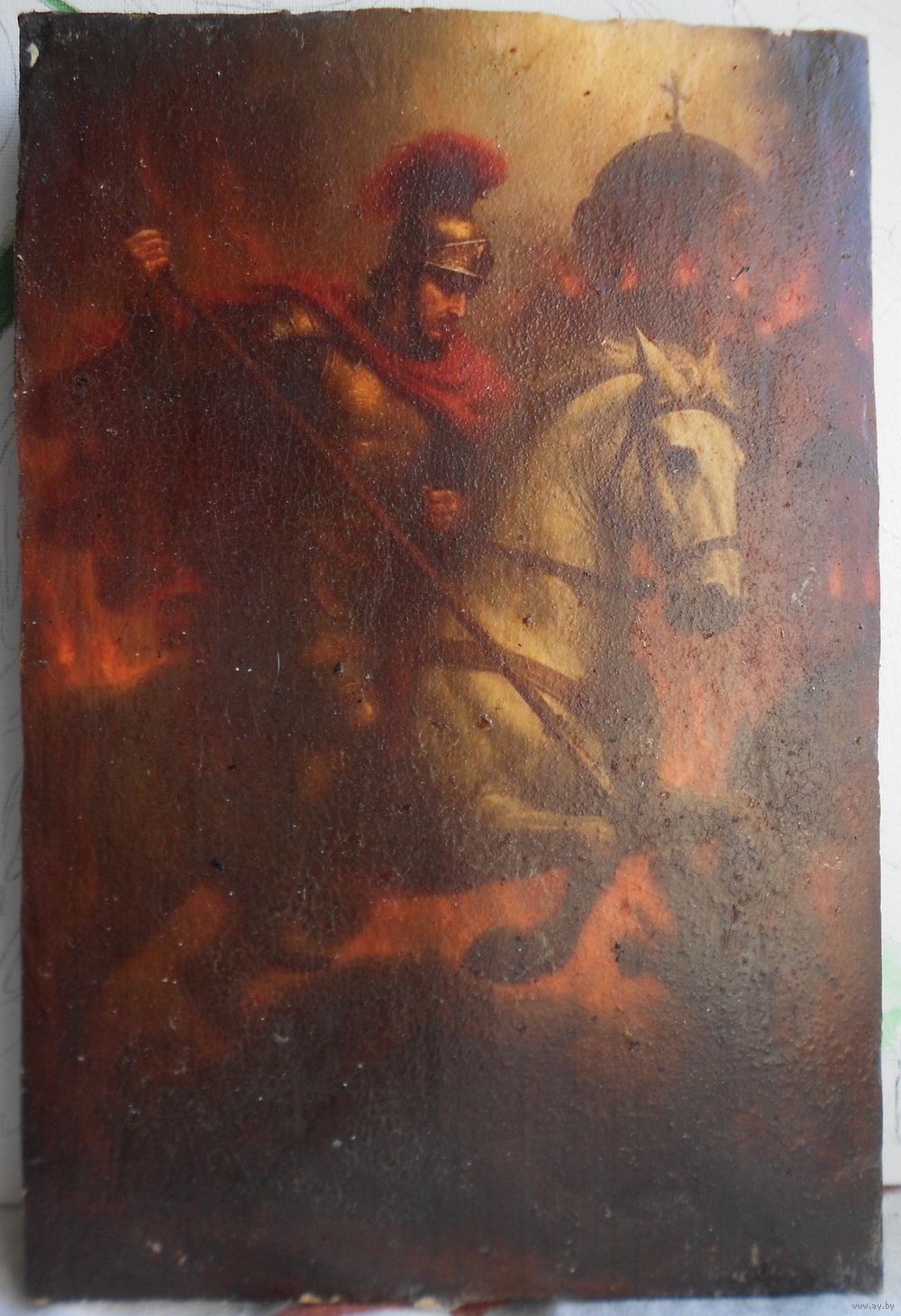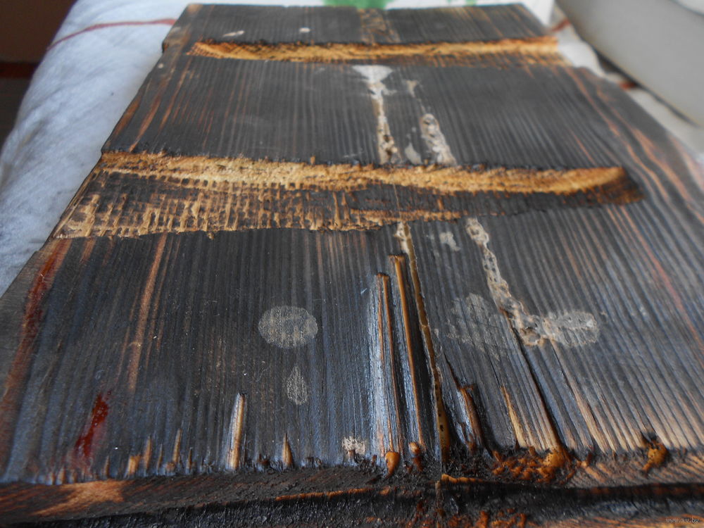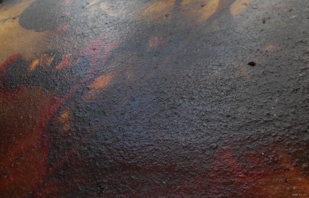 Икона на дереве, дерево покрыто мелом, по мелу сюжет, краска потрескалась . Возраст не знаю . Размер 27,5 см на 18,5 см, толщина 3 см