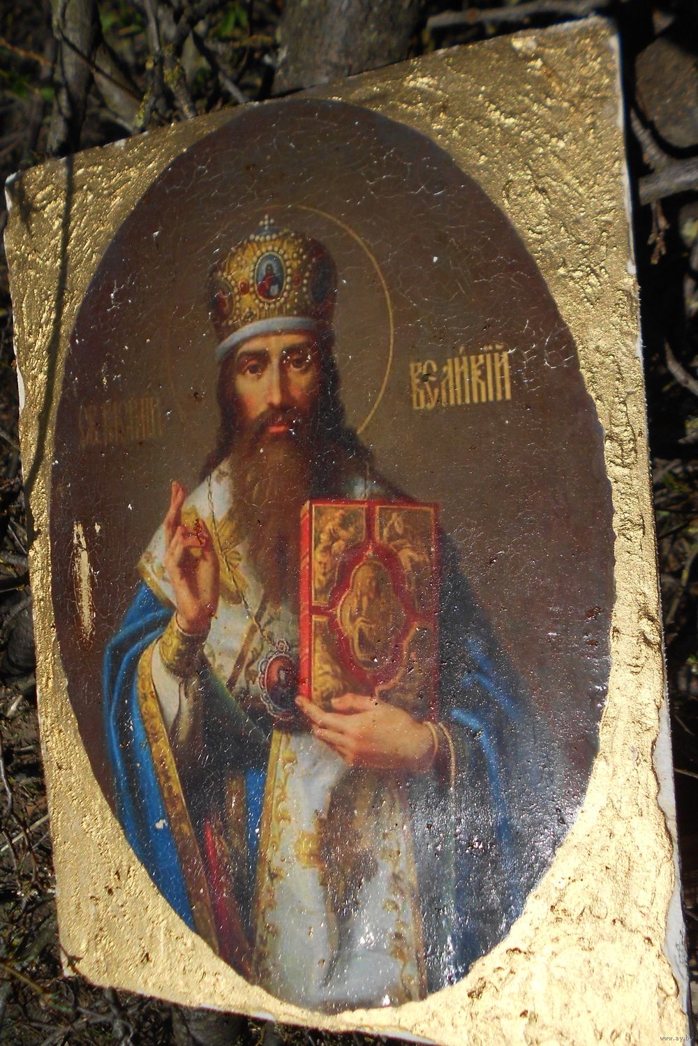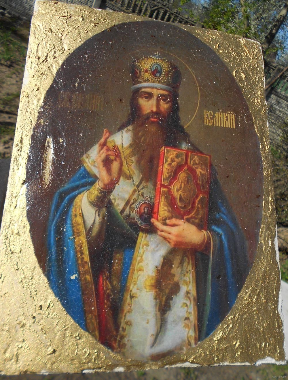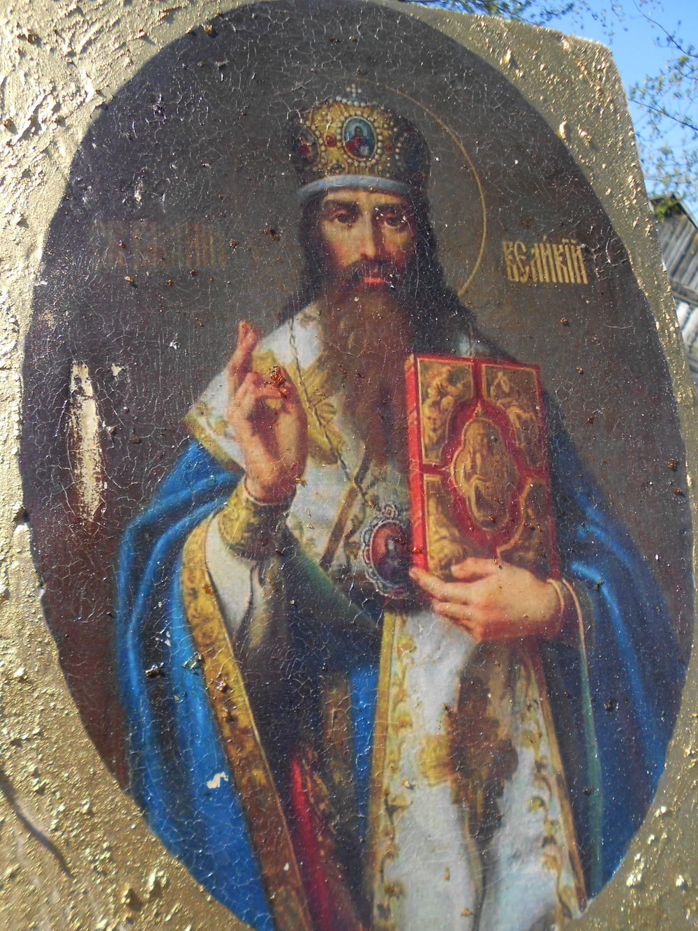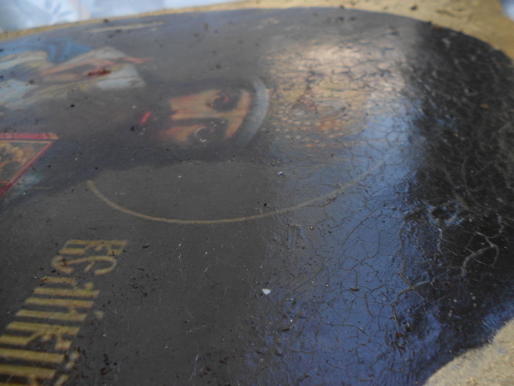 Икона на дереве, дерево покрыто материей, по материи мел, по мелу икона, краска потрескалась, возраст точный не знаю, размер 30,5 см на 22,5 см толщина 2,5 см.