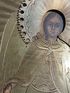 Редкая Икона Архангела Михаила, 19 век. Красивый кованный оклад с золочением, серебро-84 пробы. Штихель. Киот. Размер без Киота-14-12см.