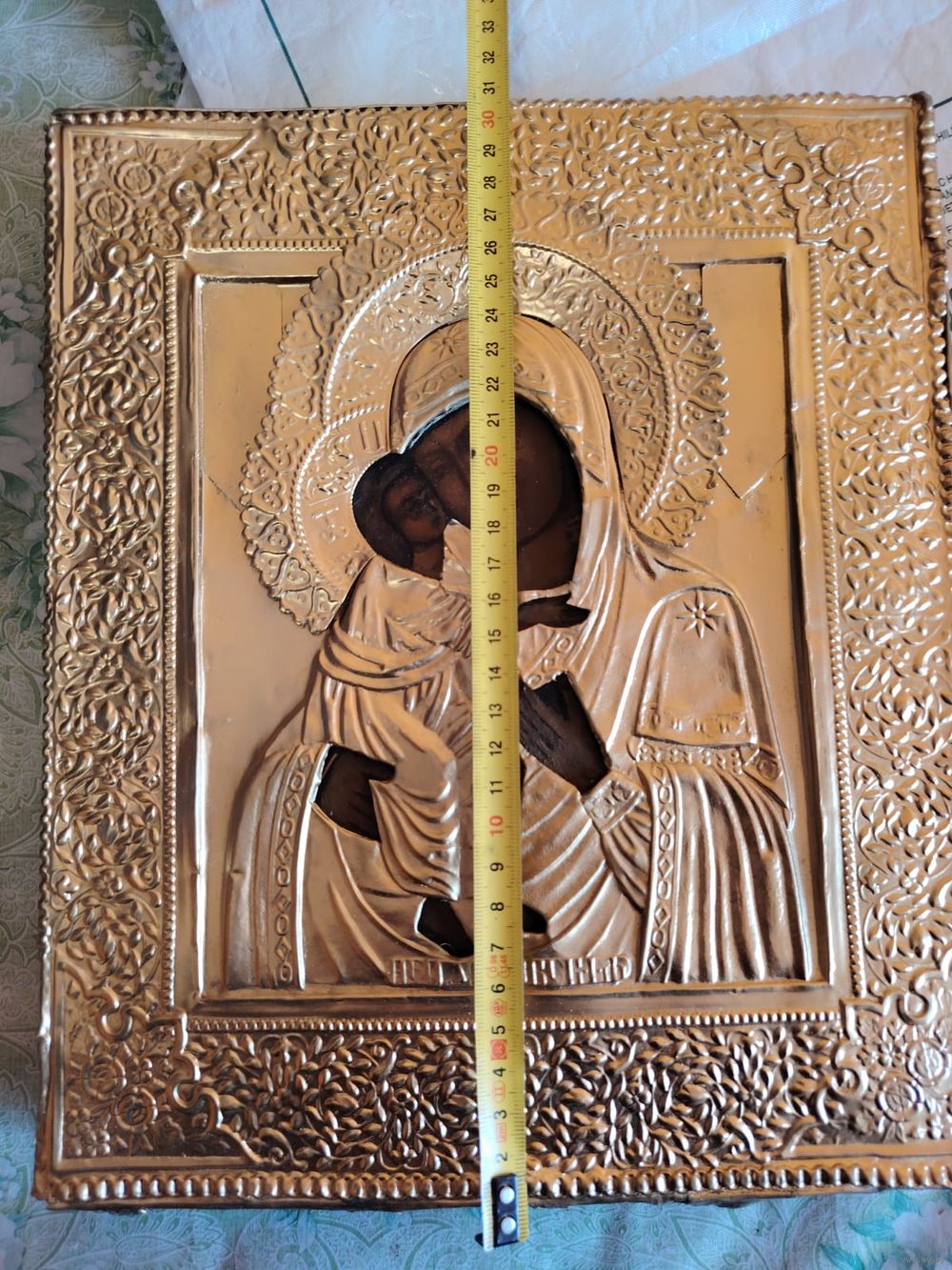 Очень красивая Икона в окладе с огненным золочением, размер-32-27см