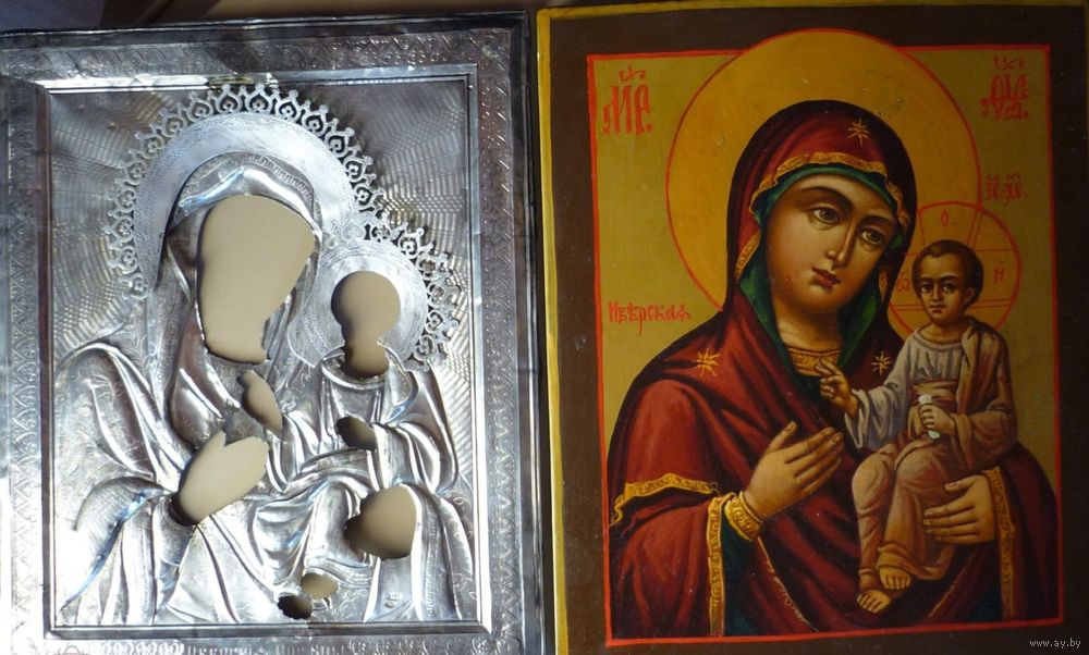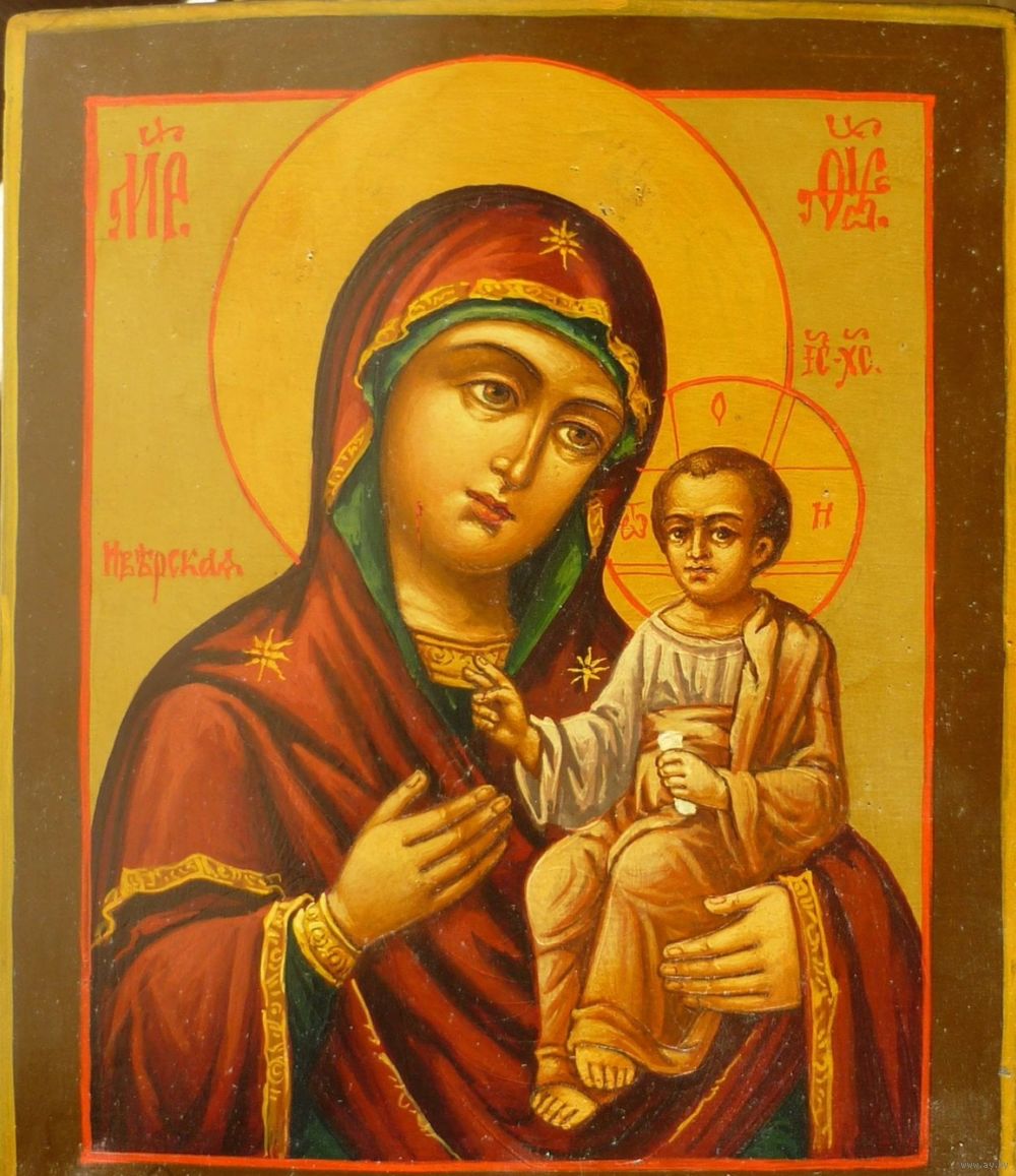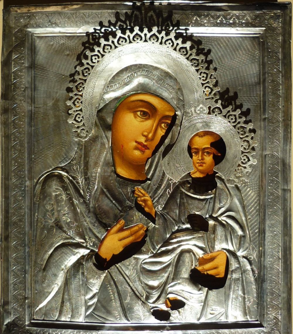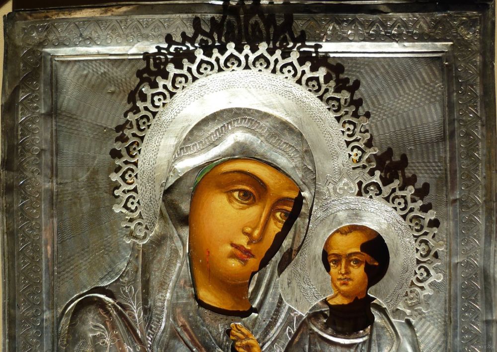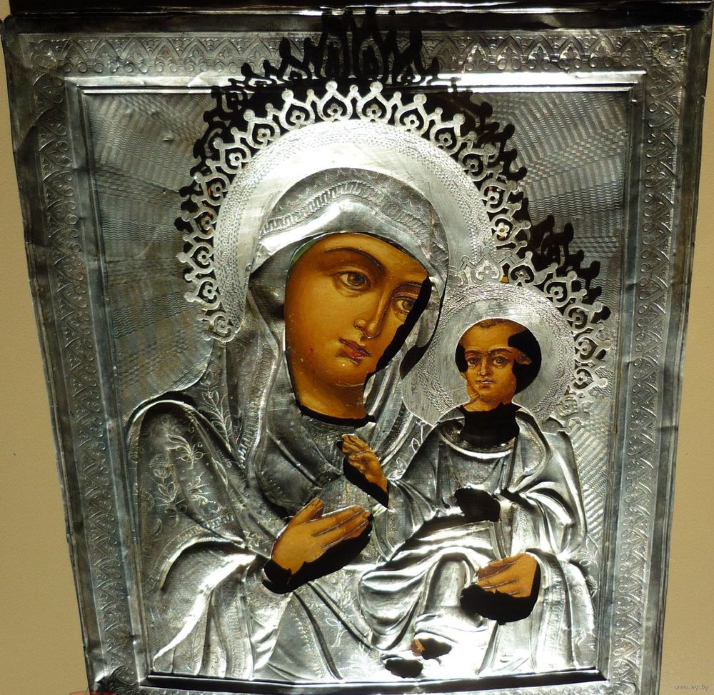 Икона Божией Матери Иверская. Красивый кованный оклад 84 пробы, вес-120 грамм, яркая живопись, не оторвать глаз. Размер Иконы-27-22см.