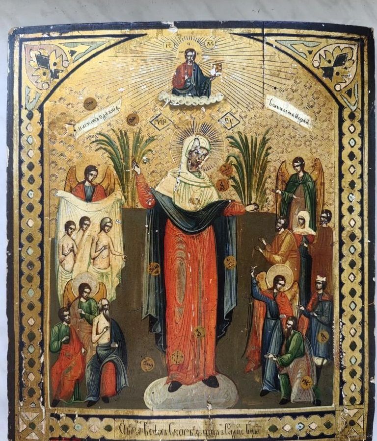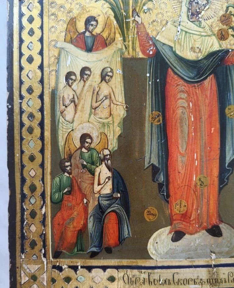 Очень красивая яркая Икона, Божией Матери Скорбящая. Размер 32-27см.