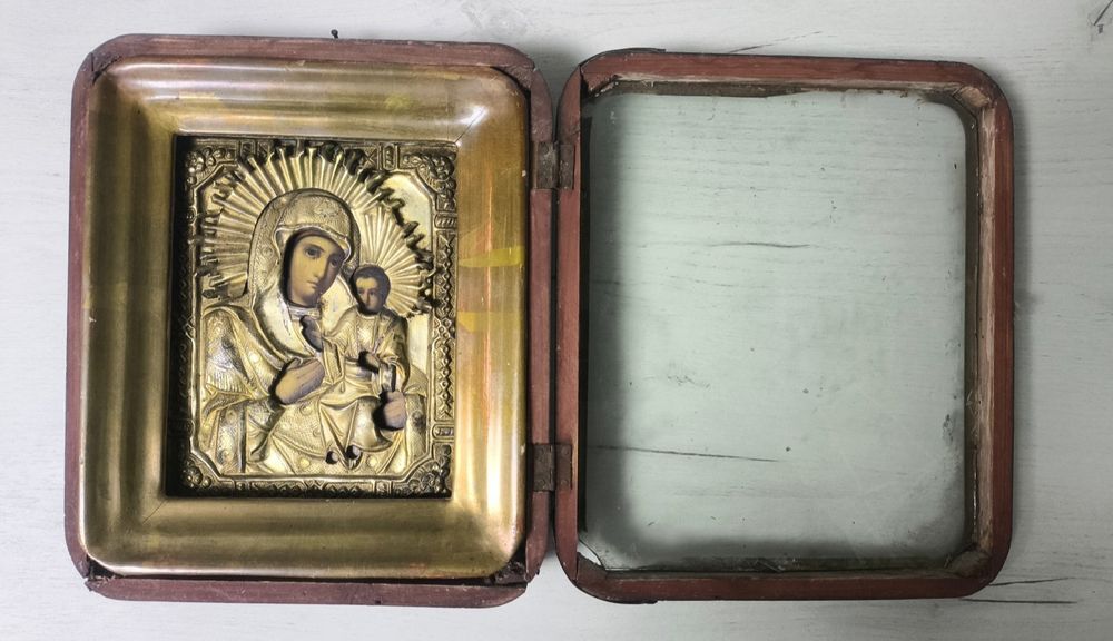 Состояние оценивайте по фото. Размер - 25 на 23 см. Рамка - 22.5 на 19 см. Сама икона 18 на 15 см.