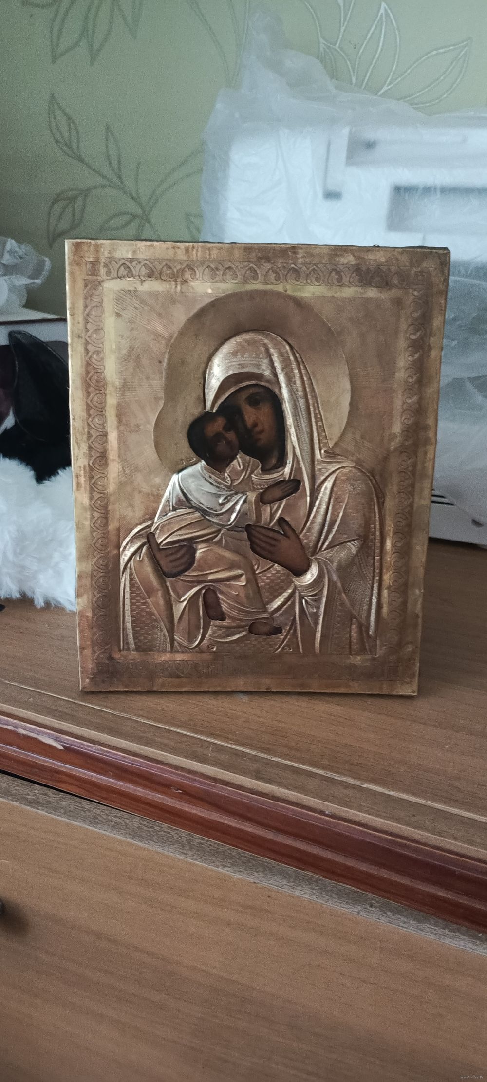 Фото сделано при разном освещении телефоном. Вживую Икона, глаз не оторвать. 19 век, всё родное. Ничего не вскрывалось. Размер-22-18см. Шикарный подарок на любой случай жизни.икона божией матери владимирская+8
