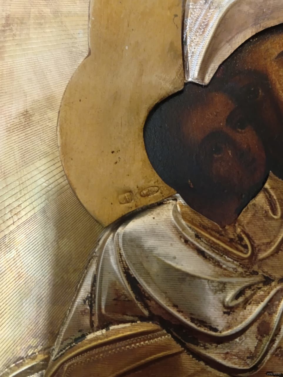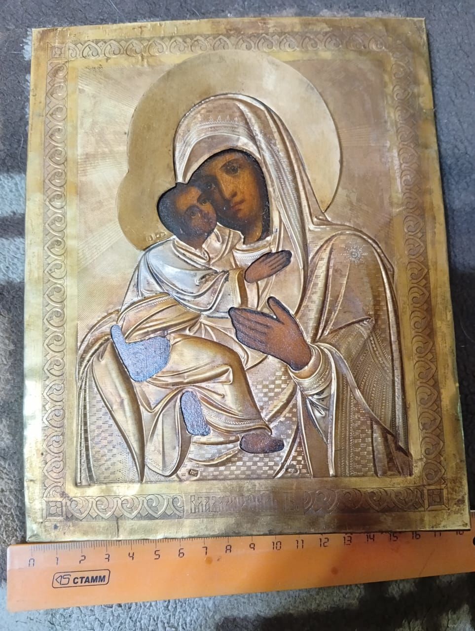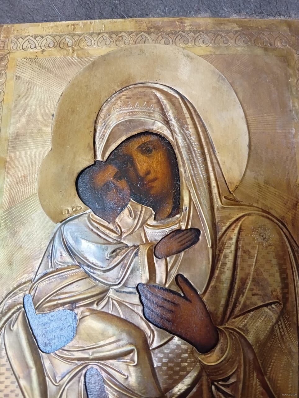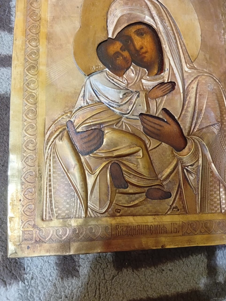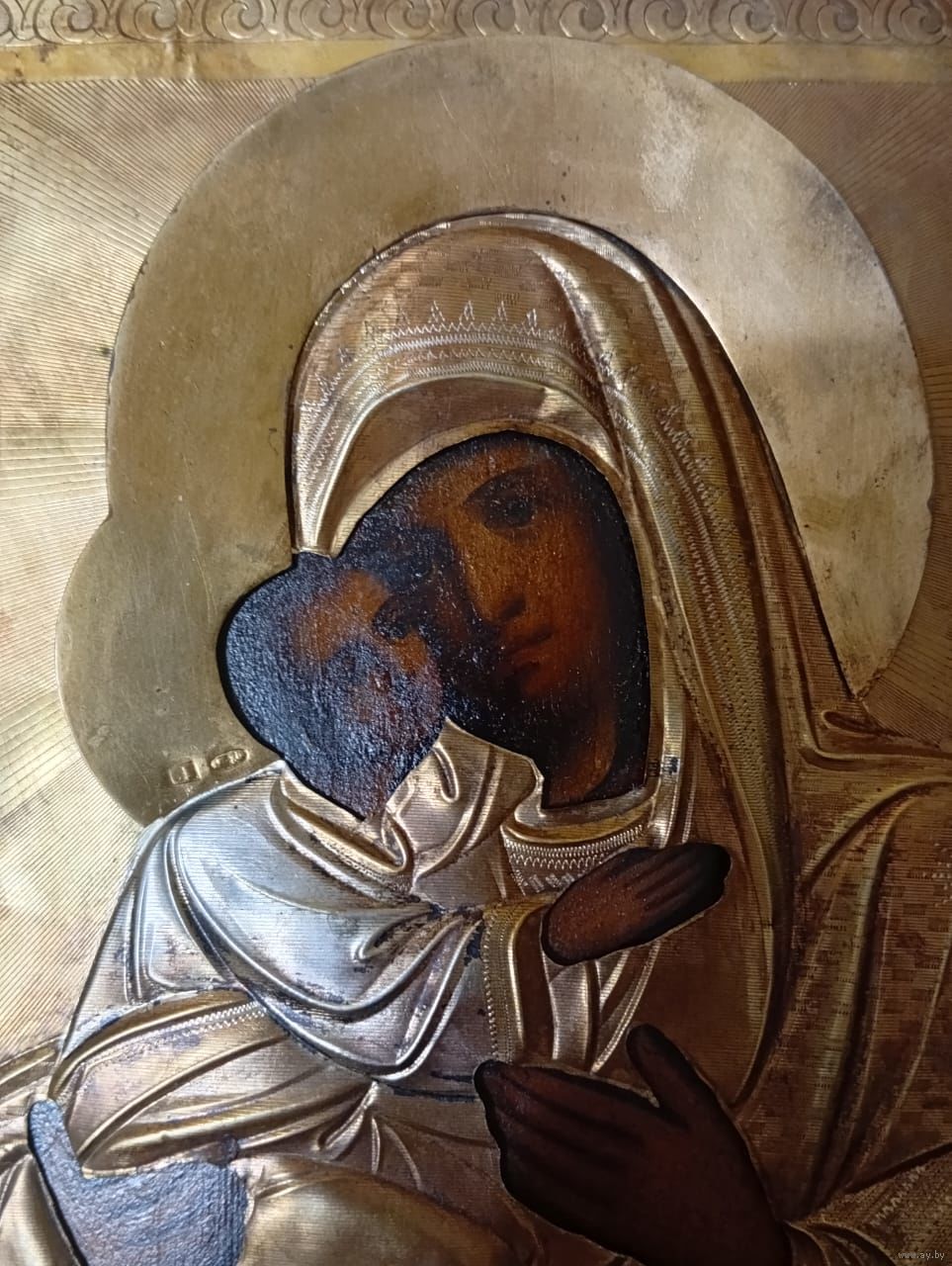 Икона Божией Матери Владимирская, 19 век. Оклад серебро 84 пробы, золочение. Достойное коллекционное состояние. Размер-22-18см.