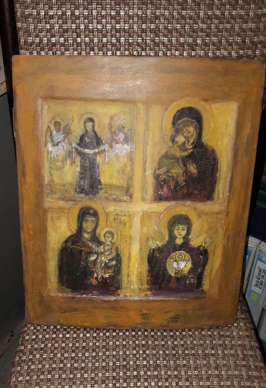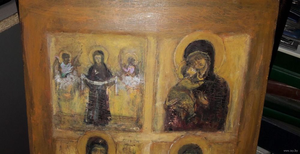 Икона " Четырёхчастник ". 19-й век.Ковчег. Размер 35.5 на 30 см. Хорошая крепкая доска Состояние на фото.