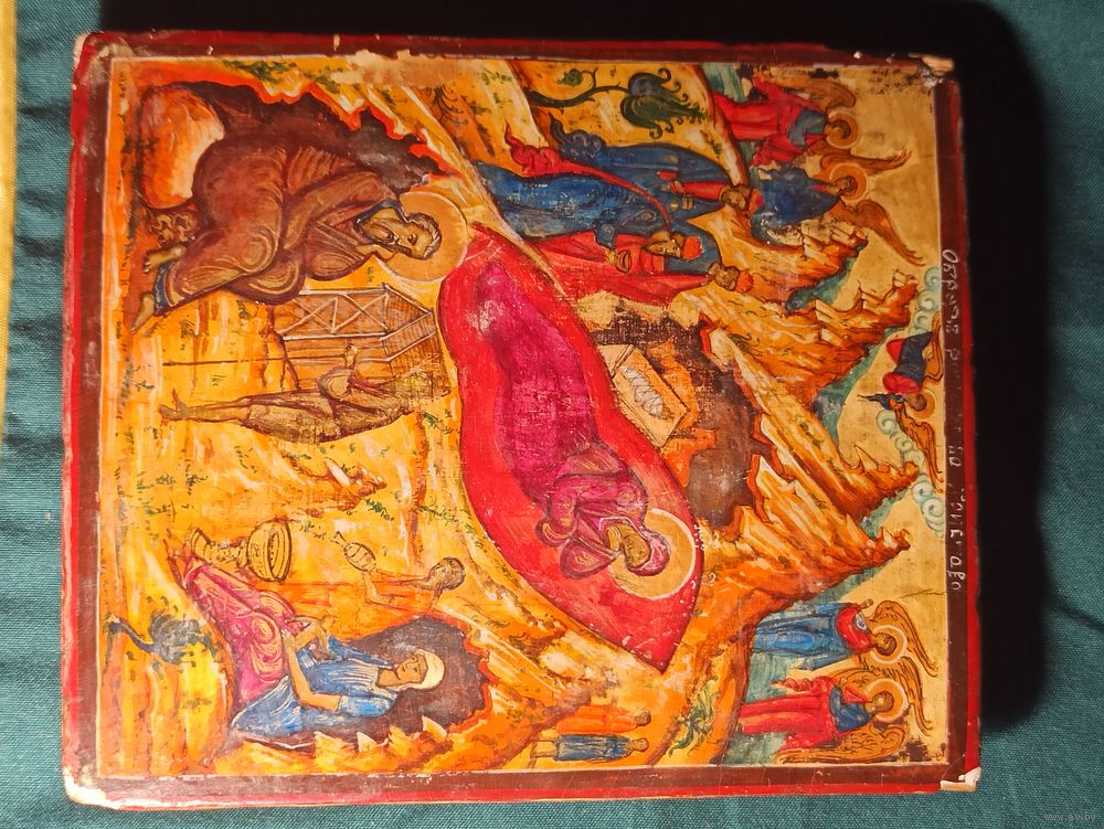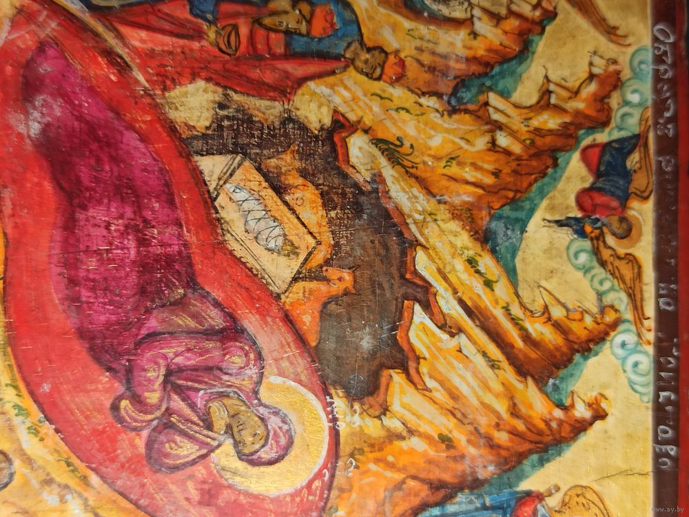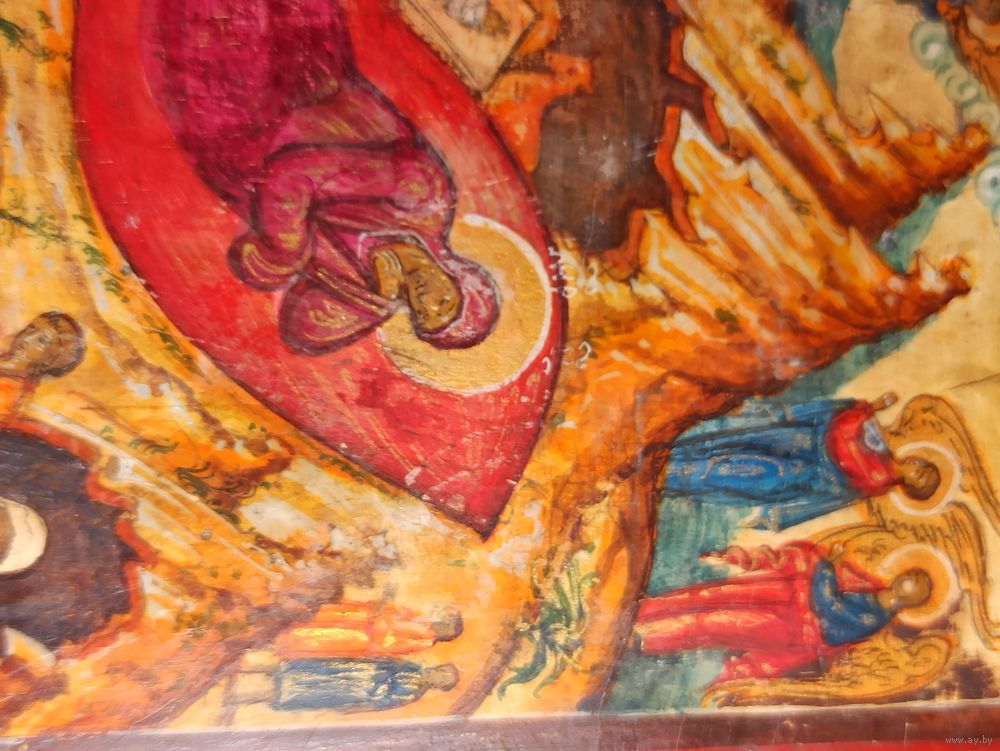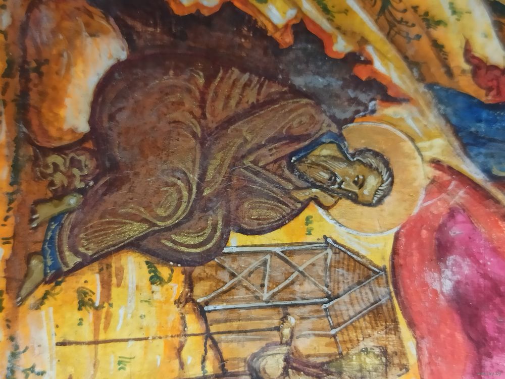 Икона деревянная "Рождество пресвятой богородицы".. Очень тонкая работа, предположительно конец 19-начало 20 века.