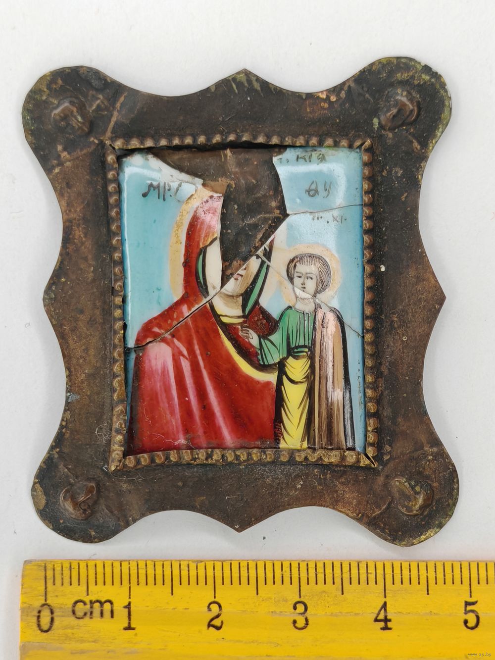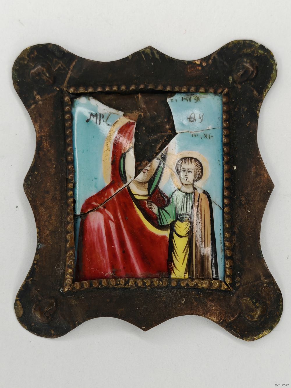 Икона Дева Мария и Иисус Христос. Финифть. Как есть. С рубля