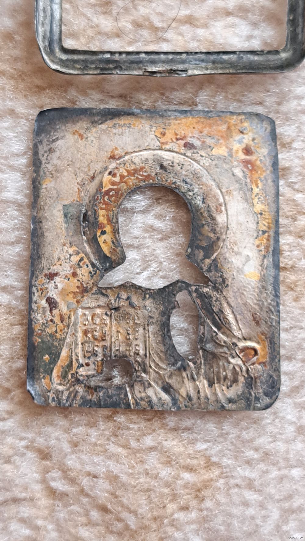 В реставрацию. Размер без учёта ушка- 5 × 4.5 см. Письмо на цинковой пластине. Смотрите также и на другие мои лоты. Всегда много интересного в продаже. КУПЛЮ ИКОНЫ. КУПЛЮ УГОЛЬНЫЕ САМОВАРЫ. КУПЛЮ СТАТУЭТКИ И ДРУГОЙ АНТИКВАРИАТ. КУПЛЮ ЧАСЫ КОРПУСА С МАРКИРОВКОЙ АУ. КУПЛЮ МОНЕТЫ, ЗНАКИ, НАГРАДЫ.