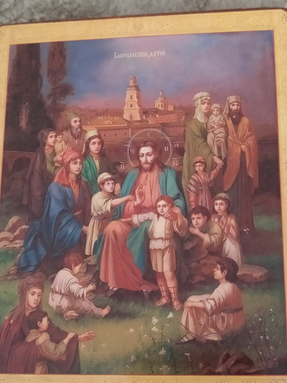 Икона Иисус Христос с детьми редкая на дереве 12/12