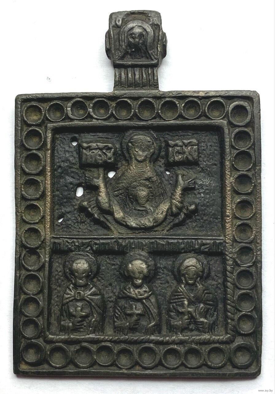 Икона меднолитая Знамение Пресвятой Богородицы с избранными Святыми. 18 век. Оригинал. Гарантия. Редкая! Размер без оглавия 6.5 × 4.5 см. Есть непроливы в виде нескольких сквозных отверстий. Достойное пополнение коллекции. Смотрите также и на другие мои лоты. Всегда много интересного в продаже. КУПЛЮ ИКОНЫ. КУПЛЮ УГОЛЬНЫЕ САМОВАРЫ. КУПЛЮ СТАТУЭТКИ И ДРУГОЙ АНТИКВАРИАТ. КУПЛЮ ЧАСЫ КОРПУСА С МАРКИРОВКОЙ АУ. КУПЛЮ МОНЕТЫ, ЗНАКИ, НАГРАДЫ.