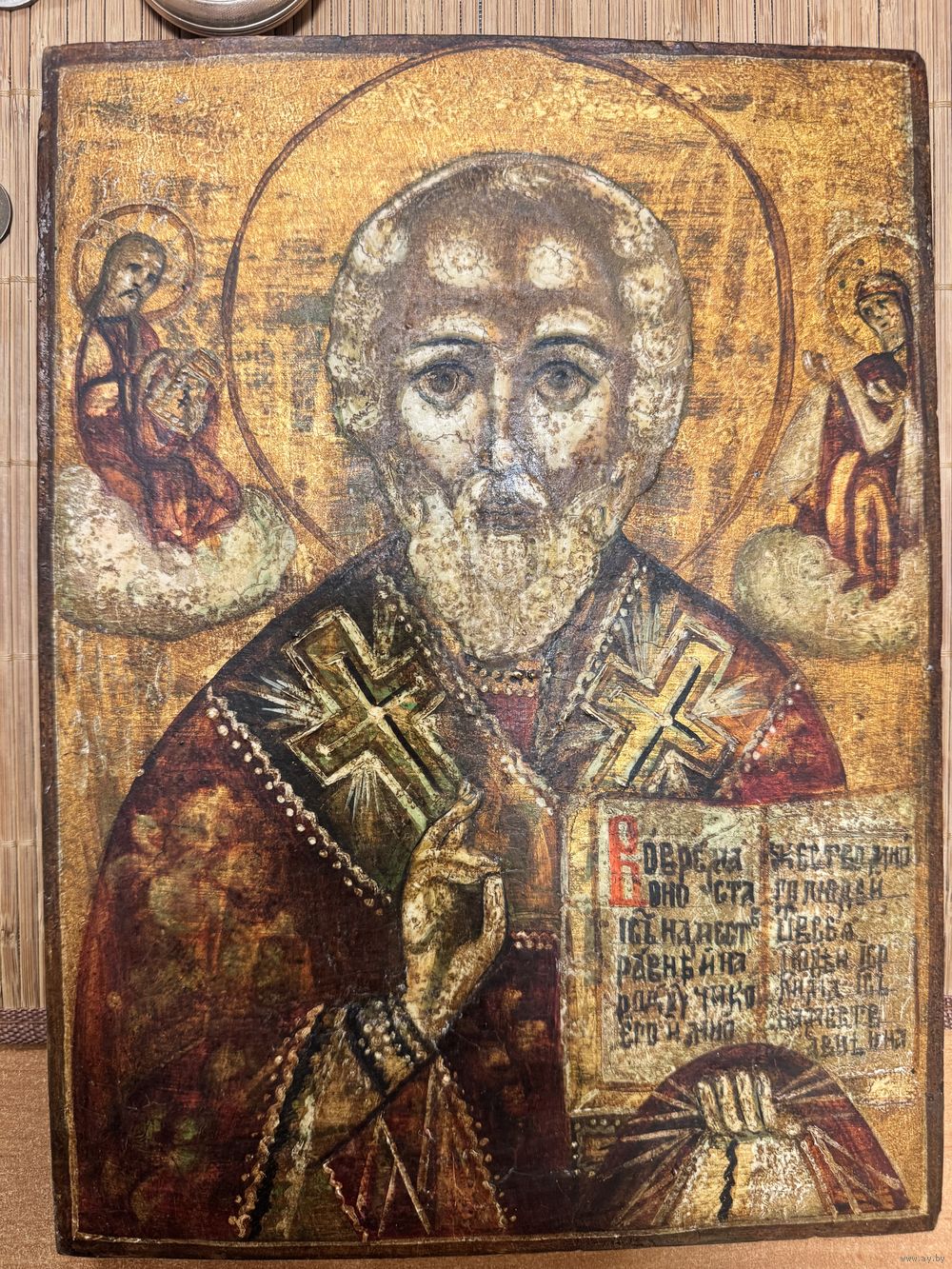 Икона « Николай Чудотворец», живопись по-золоту,шикарная икона 19 в! Настоящая находка для ценителей искусства!!! 30,5*23*1.5