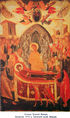 Мишель Кено: "Икона - это богословие в образах, икона выражает цветом то, что Евангелие провозглашает словами". Икона - «умозрение в красках», но это умозрение не частное, а соборное. Икона—плод творчества всей древней церкви, часть ее Предания. Икона не просто картина на религиозный сюжет, призванная пробуждать соответствующие эмоции у зрителя. Это один из путей, каким Бог являет Себя людям. Через икону мы обретаем видение духовного мира. Если картину называют окном в окружающий мир, то икону можно назвать окном в мир невидимый. Она не изображает то, что привычно для человека в его повседневности. Древняя икона предстает перед нами, как большая открытая книга, богооткровение, плод духовного опыта и творение отцов ранней неразделённой церкви. Икона - это их свидетельство вечности, она несет в себе все черты мира иного.