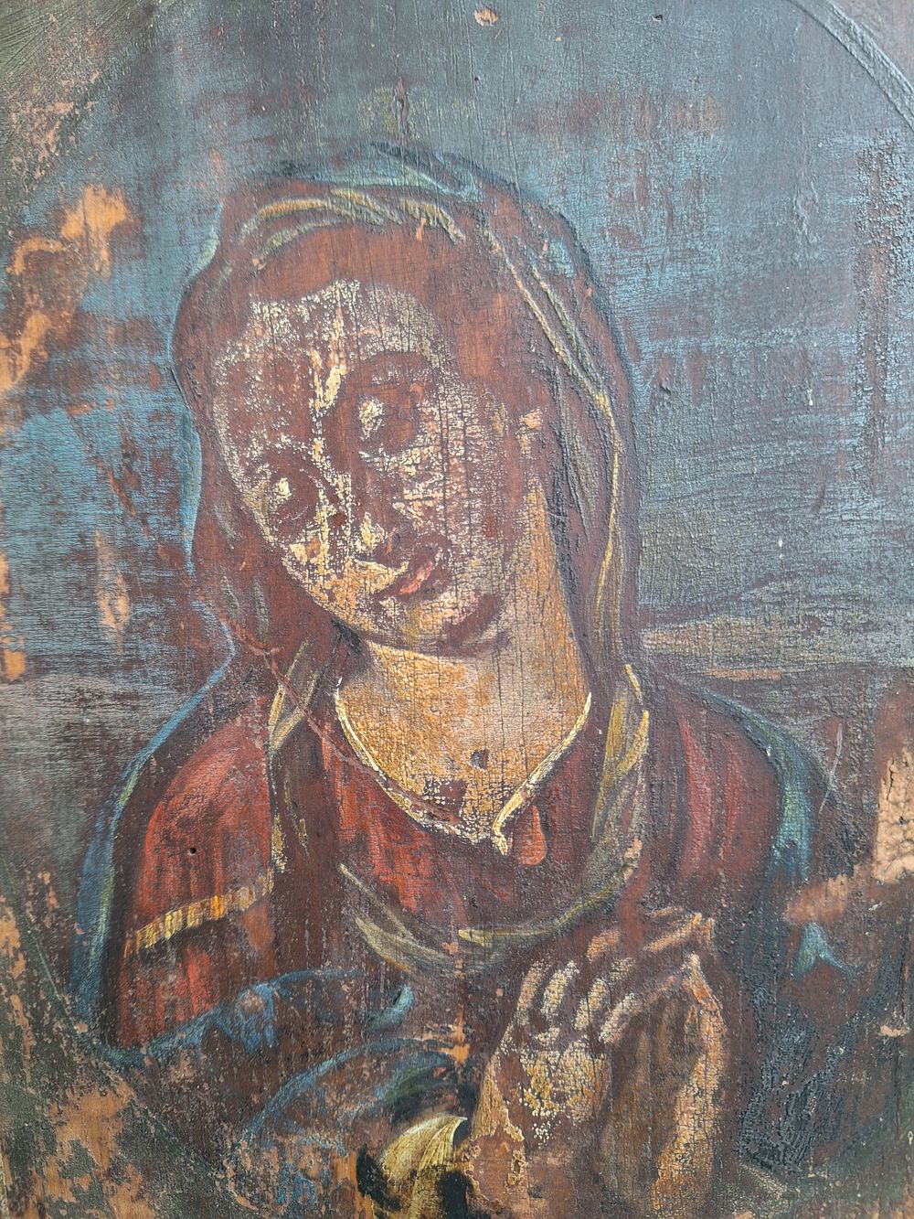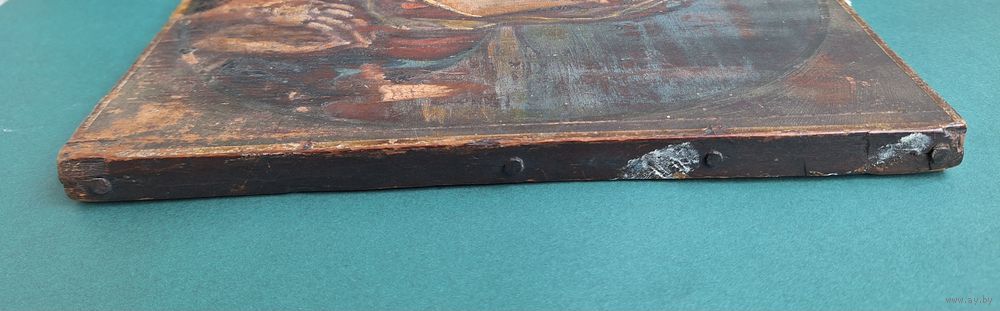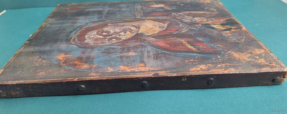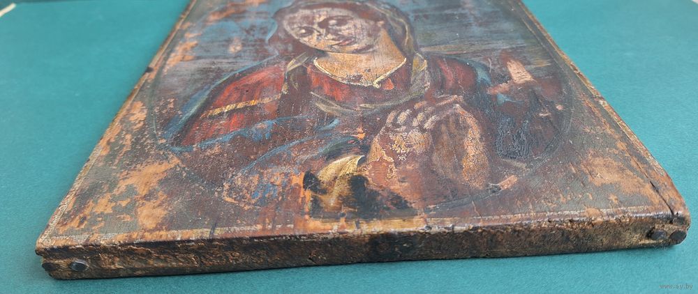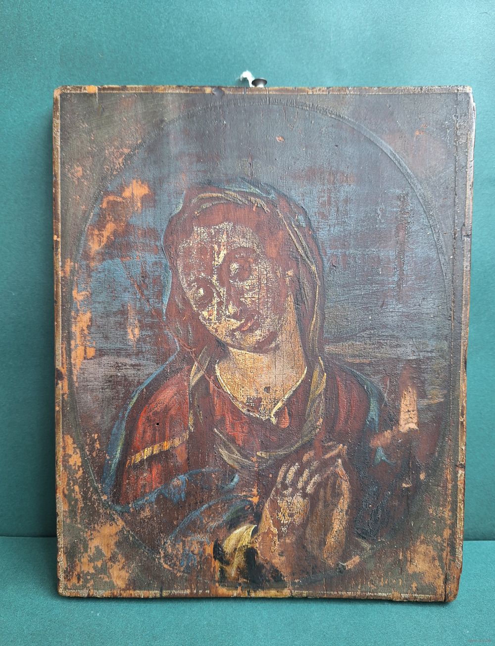 Икона Пресвятая Богородица Умиление. Размер: 22х27 см, толщина: 1,6 см. Письмо маслом по дереву. Без вмешательств. 19 век.