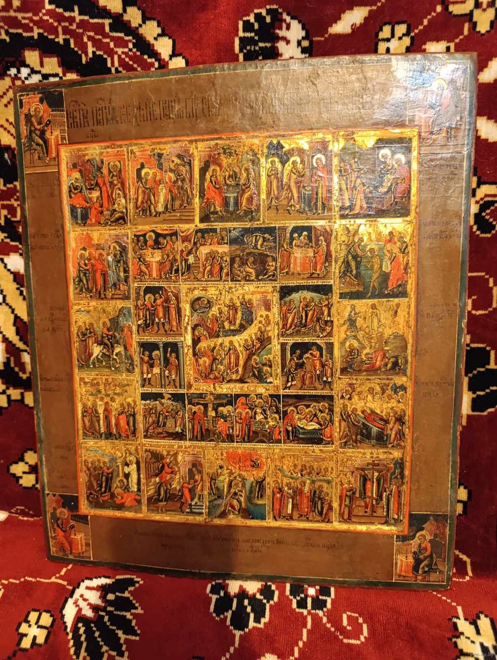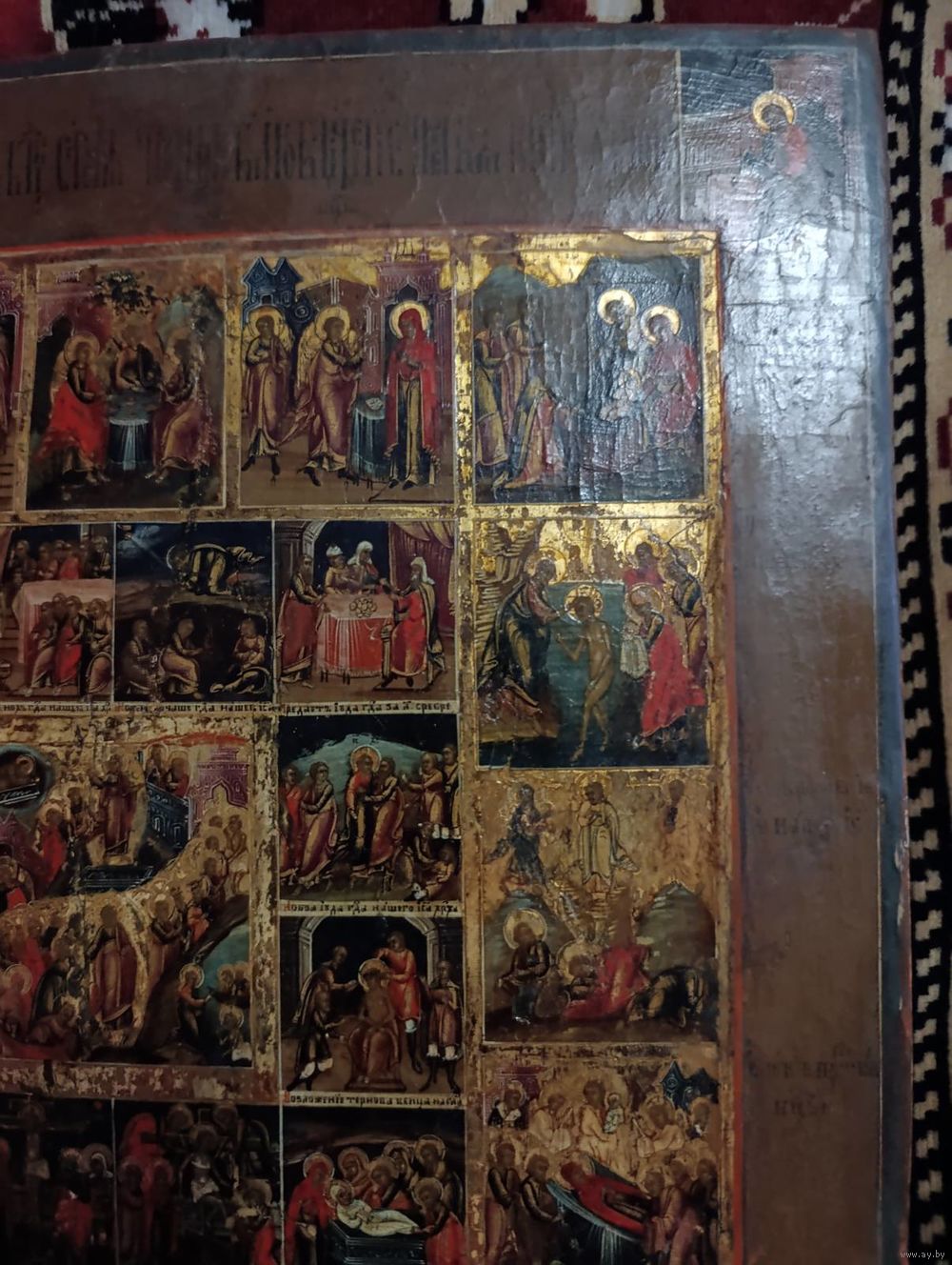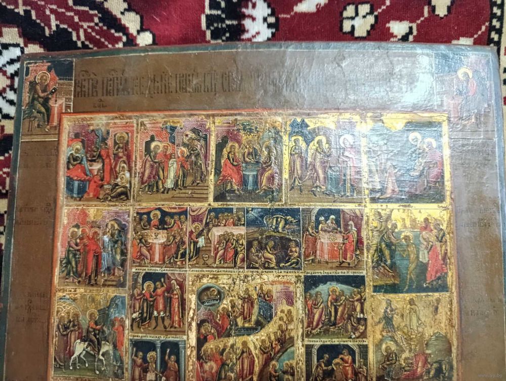 Икона школьного письма, доска кипарис, шпонки встречные дубовые, ковчег, на золоте. Незначительные старые тонировки на полях.