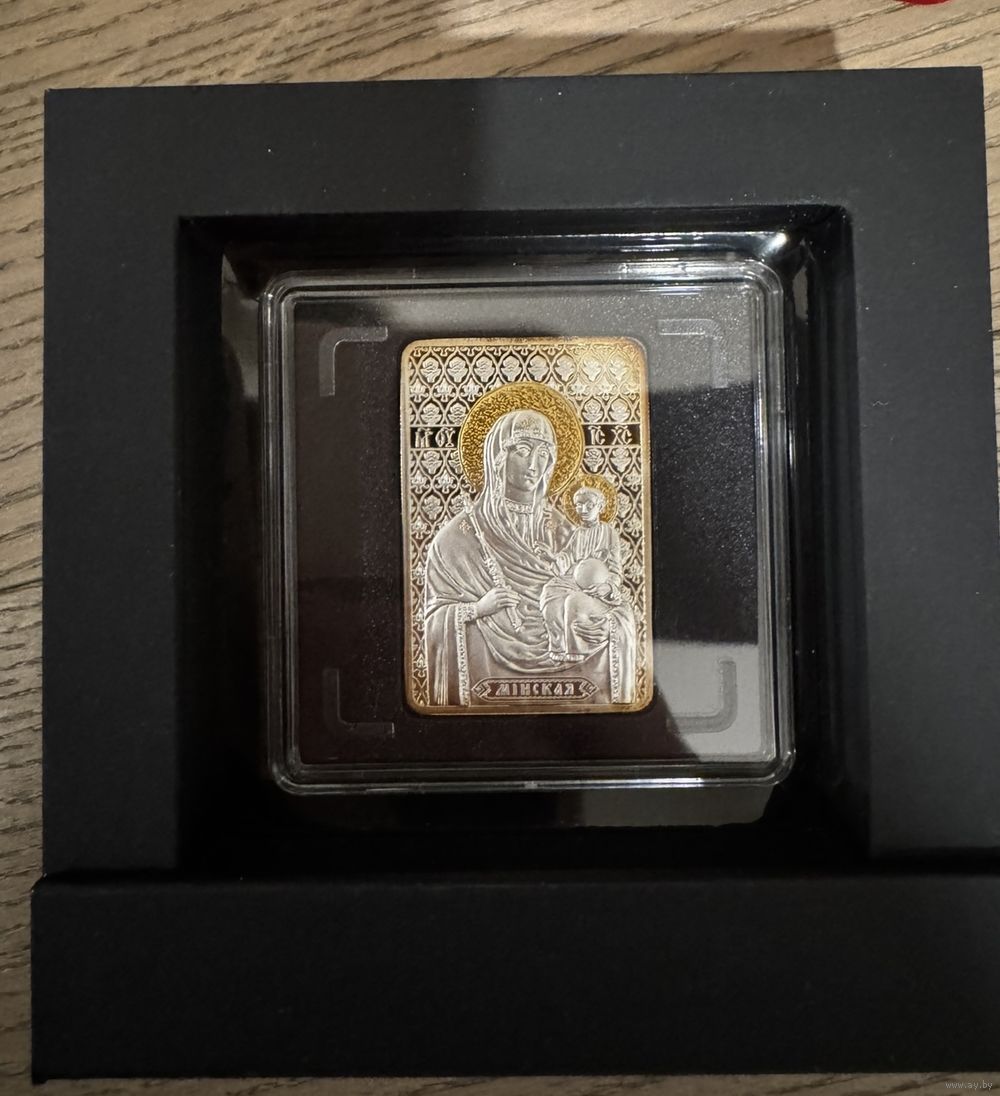 Реверс: в центре – образ Пресвятой Богородицы "Минская"; на серебряных монетах номиналом 20 и 500 рублей – изображения нимбов Богородицы и Иисуса Христа, звезды на одежде Богородицы и орнамент исполнены золотом; внизу надпись: МІНСКАЯ.
