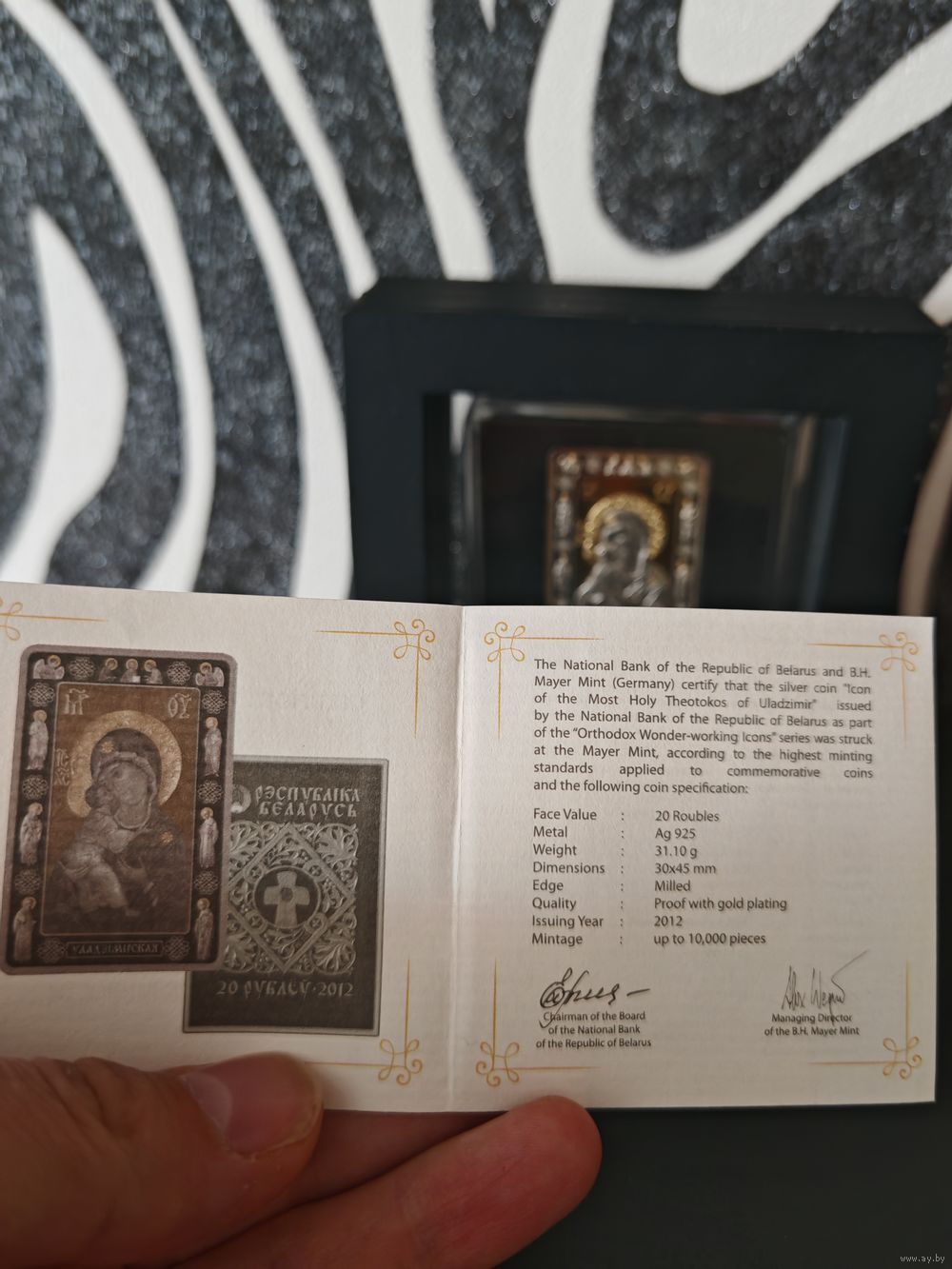 Икона Пресвятой Богородицы "Владимирская" 20 рублей 2012 Серебро 925пр., позолота 999