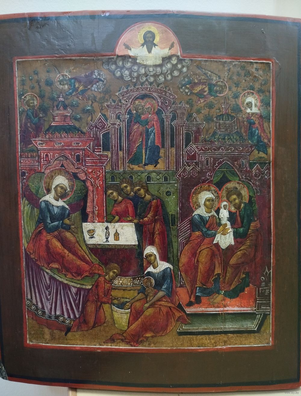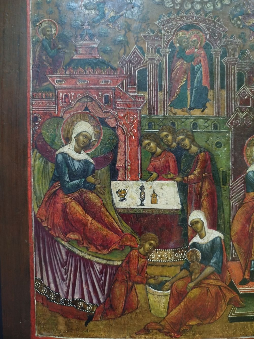 Красивая, многосюжетная икона Рождество Пресвятой Богородицы, 19 век. Центральная Россия.