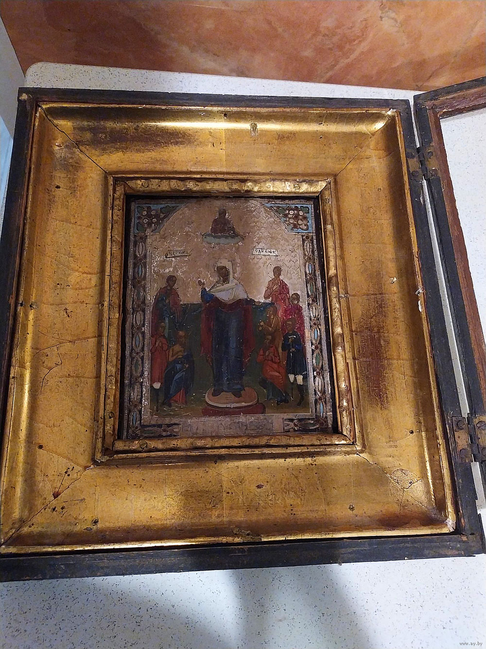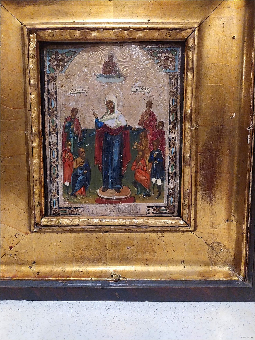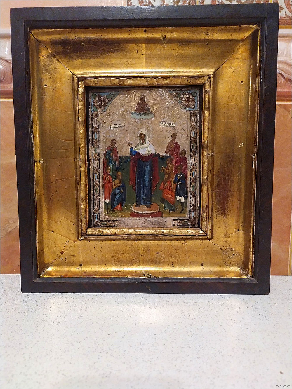 Икона «Всех скорбящих радость» письмо доска кипарис с киотам 31\28 см без киота 18\15 см Царская Россия .