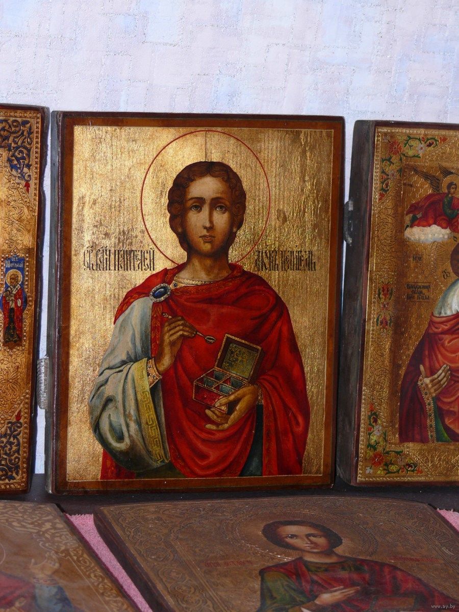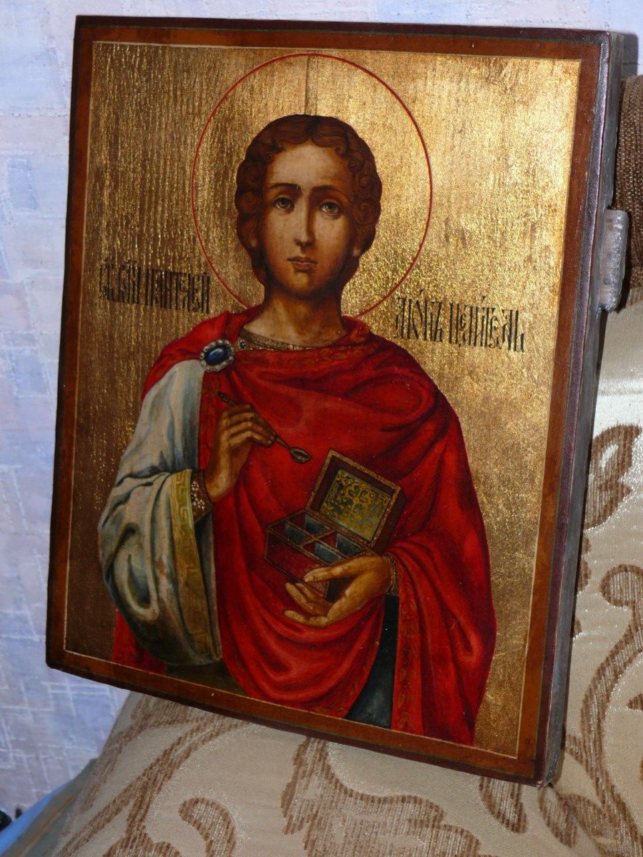 ***************************** ИКОНА СВЯТОГО ПАНТЕЛЕЙМОНА В РАЗМЕРАХ 31 * 25* 2,5 СМ**********************************