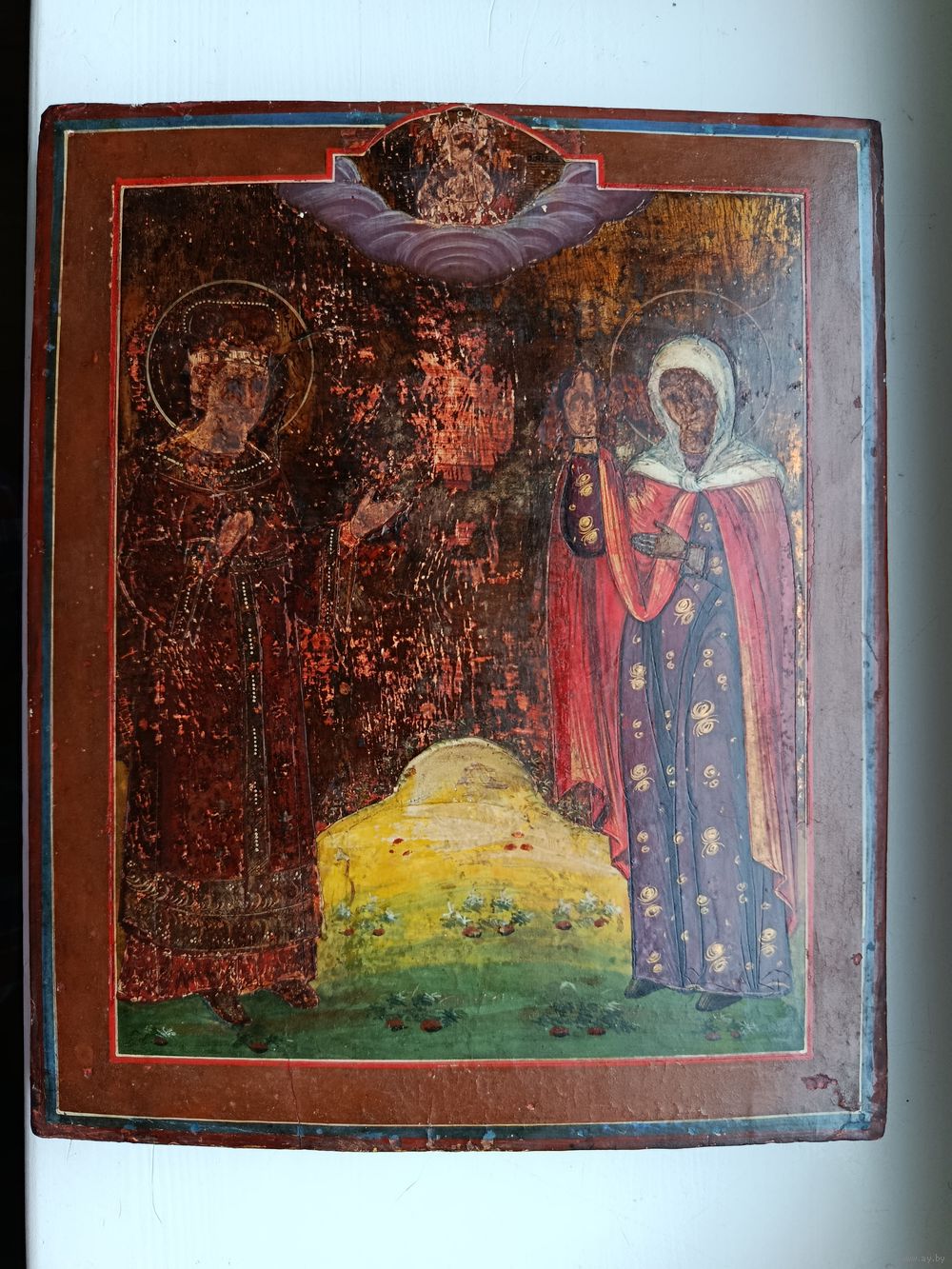 Старинная ветковская икона с шитым окладом (ризой).