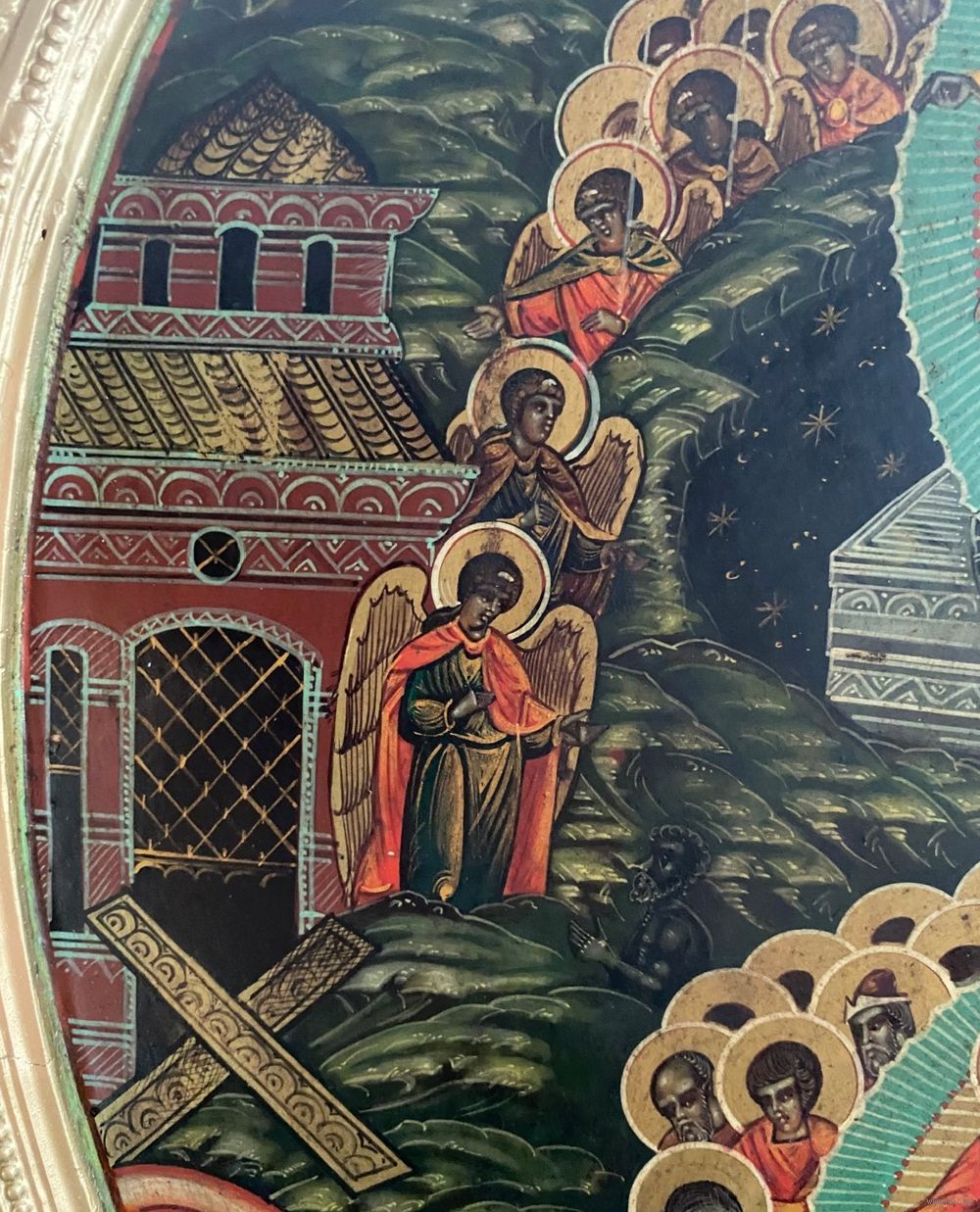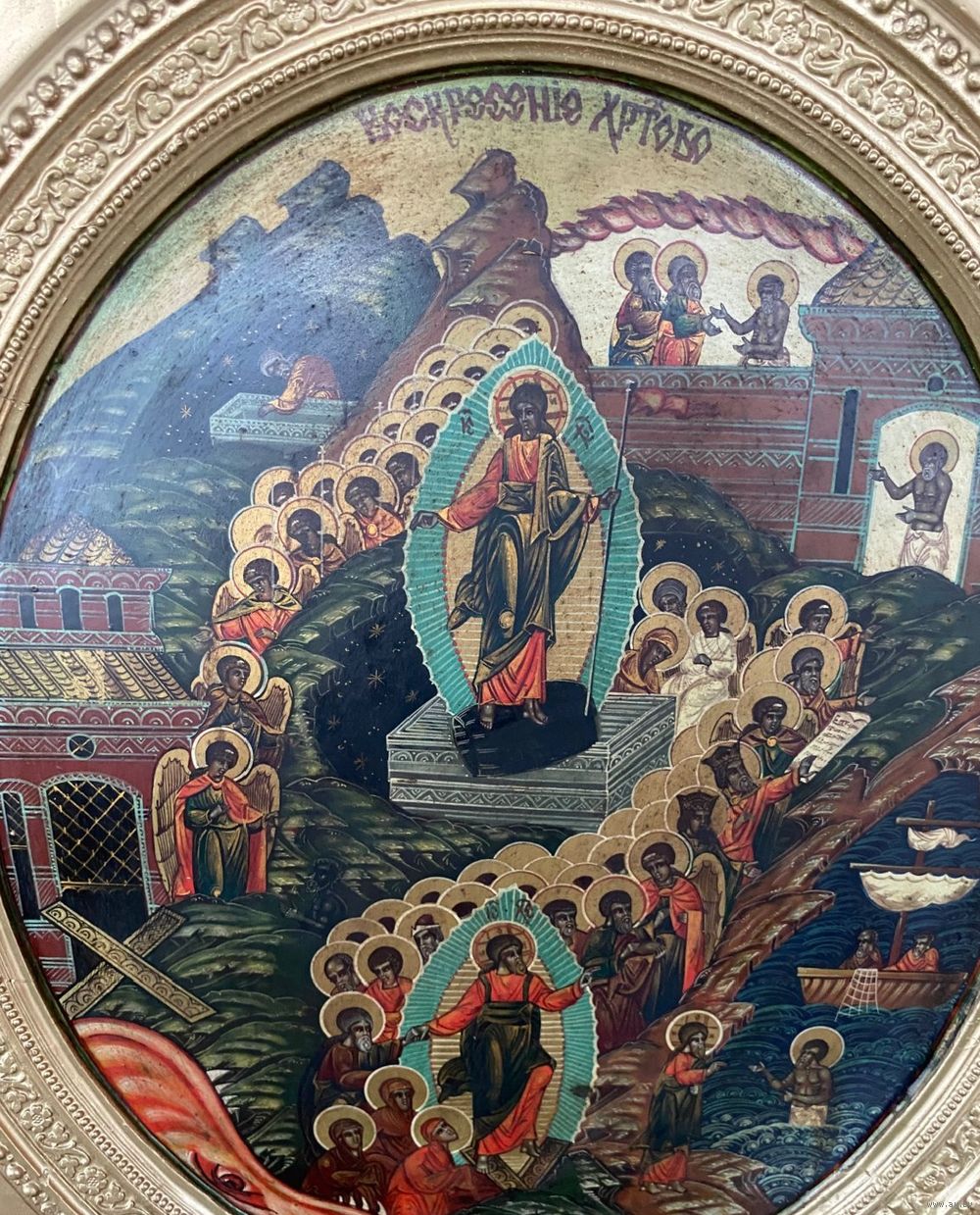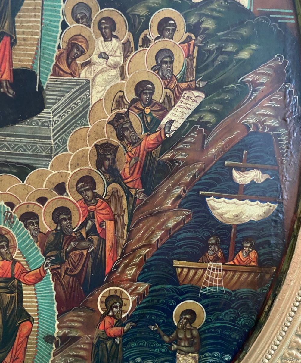 Большая храмовая икона в хорошем сохране!!! Размер 60 на 50 см. Материал, дерево, гипс. Живопись, начало 20 го века.