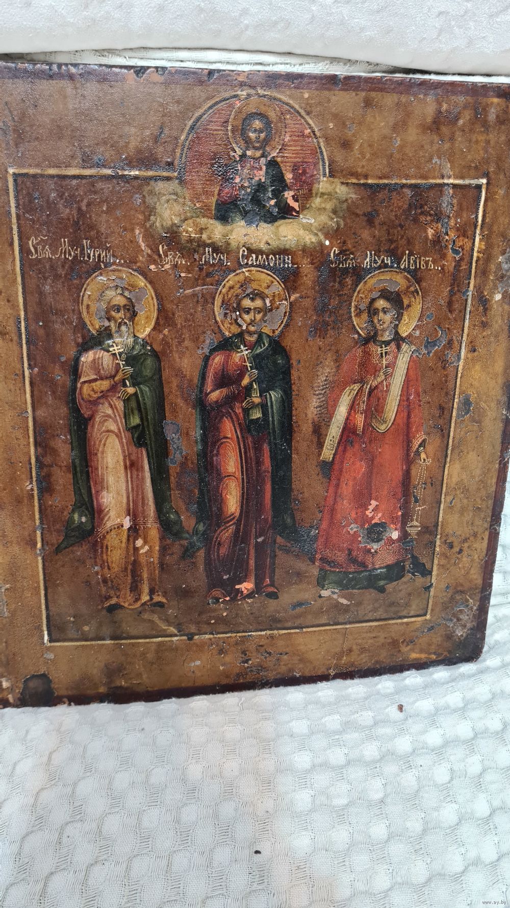 В хорошем состоянии икона три святителя . Без вмешательства . Оригинал 19 века . Размер 31×28×4см.