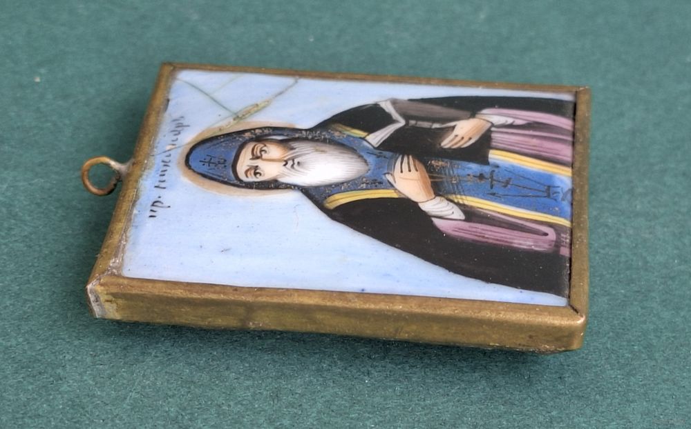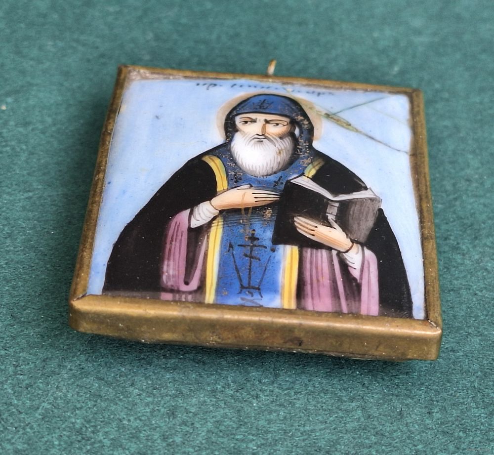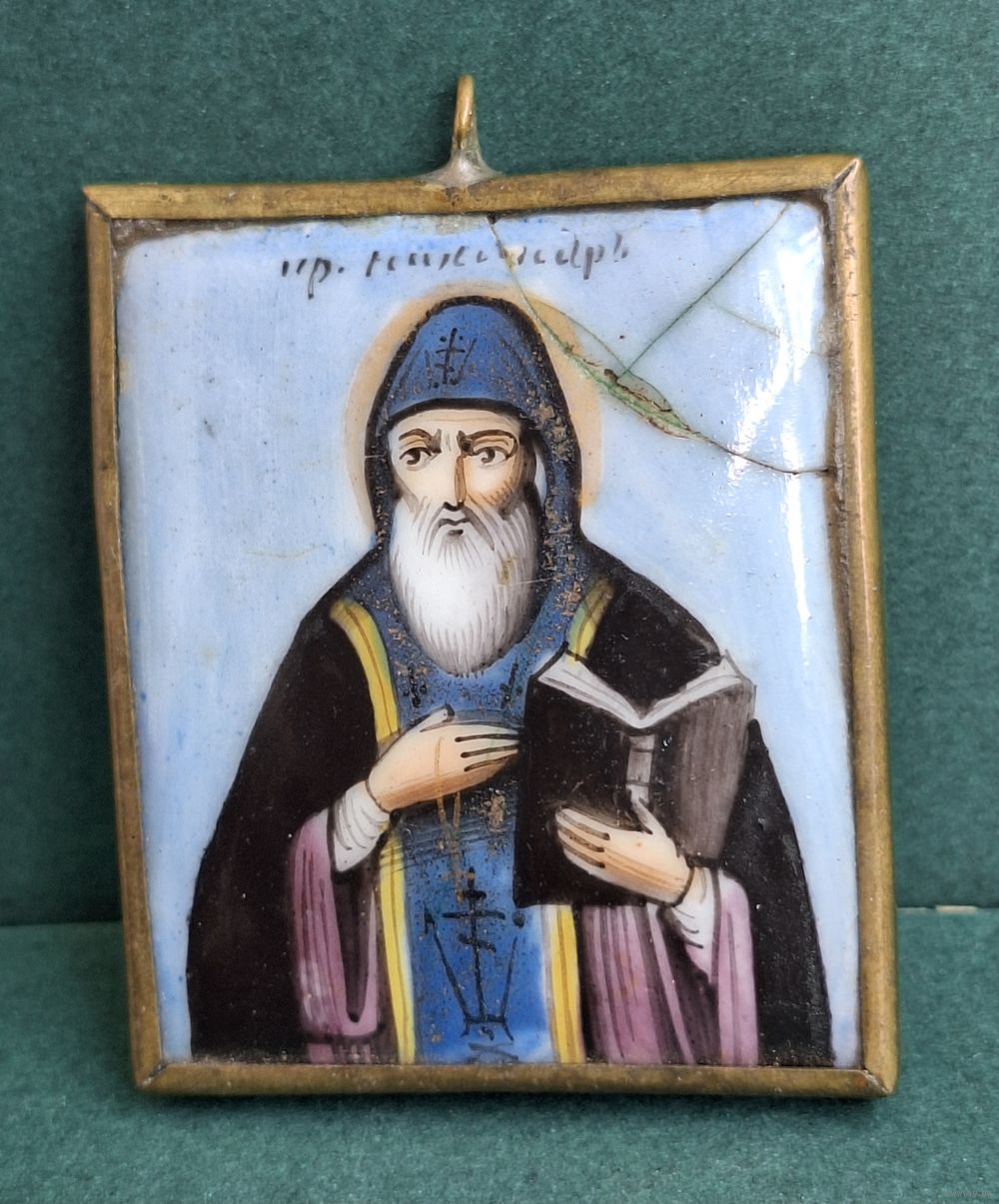 Иконка финифть, Никандр Пустынножитель (Никандр Псковский); в миру Никон; 24 июля 1507 — 24 сентября 1581 — русский православный монах, основатель Никандровой Свято-Благовещенской пустыни.