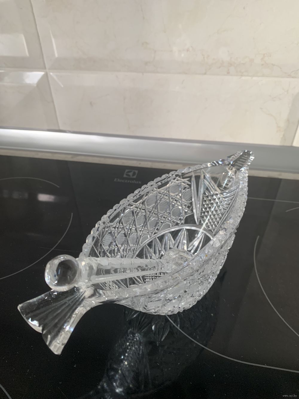 Хрустальная икорница с ложечкой. Советское изделие. Красивая.