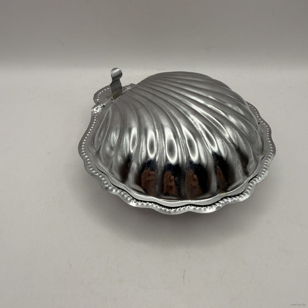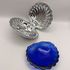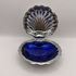 Винтажная посеребренная икорница-паштетница (кокильница) с крышкой, рельефная ракушка со стеклянной вставкой синего цвета. Италия. Размер 12 х 13 х 5 см. Естественная патина. Можно использовать в качестве масленки. На кромке стекла несколько микросколов, в использовании не видны (см. фото, учтено в цене).