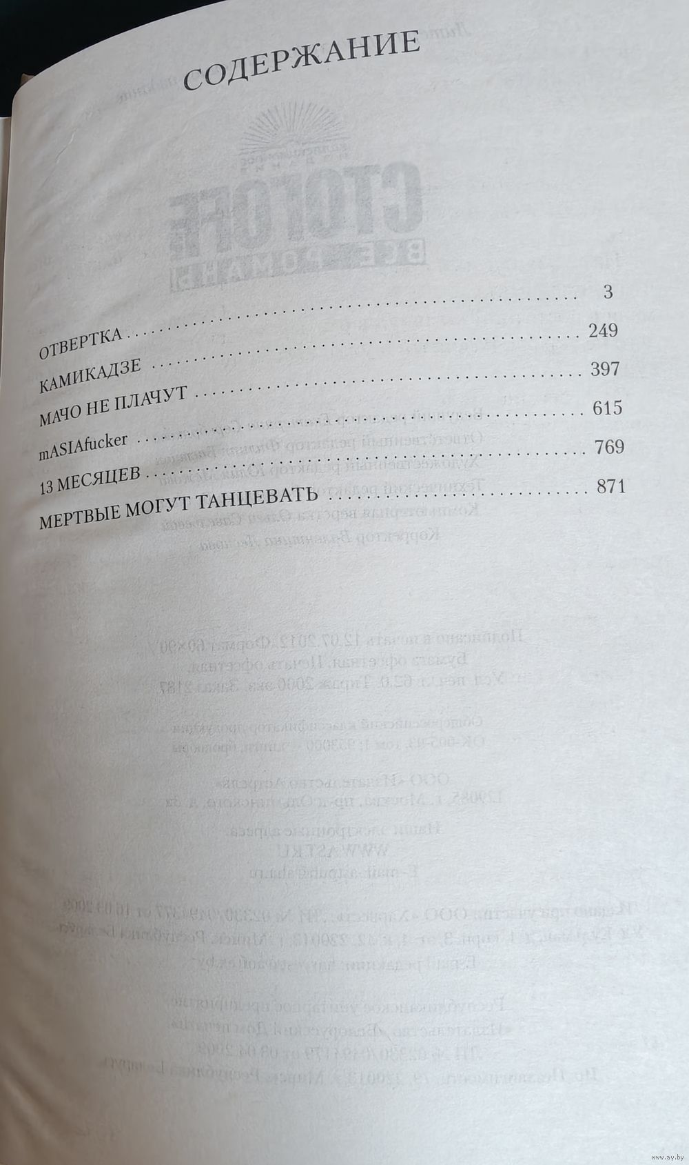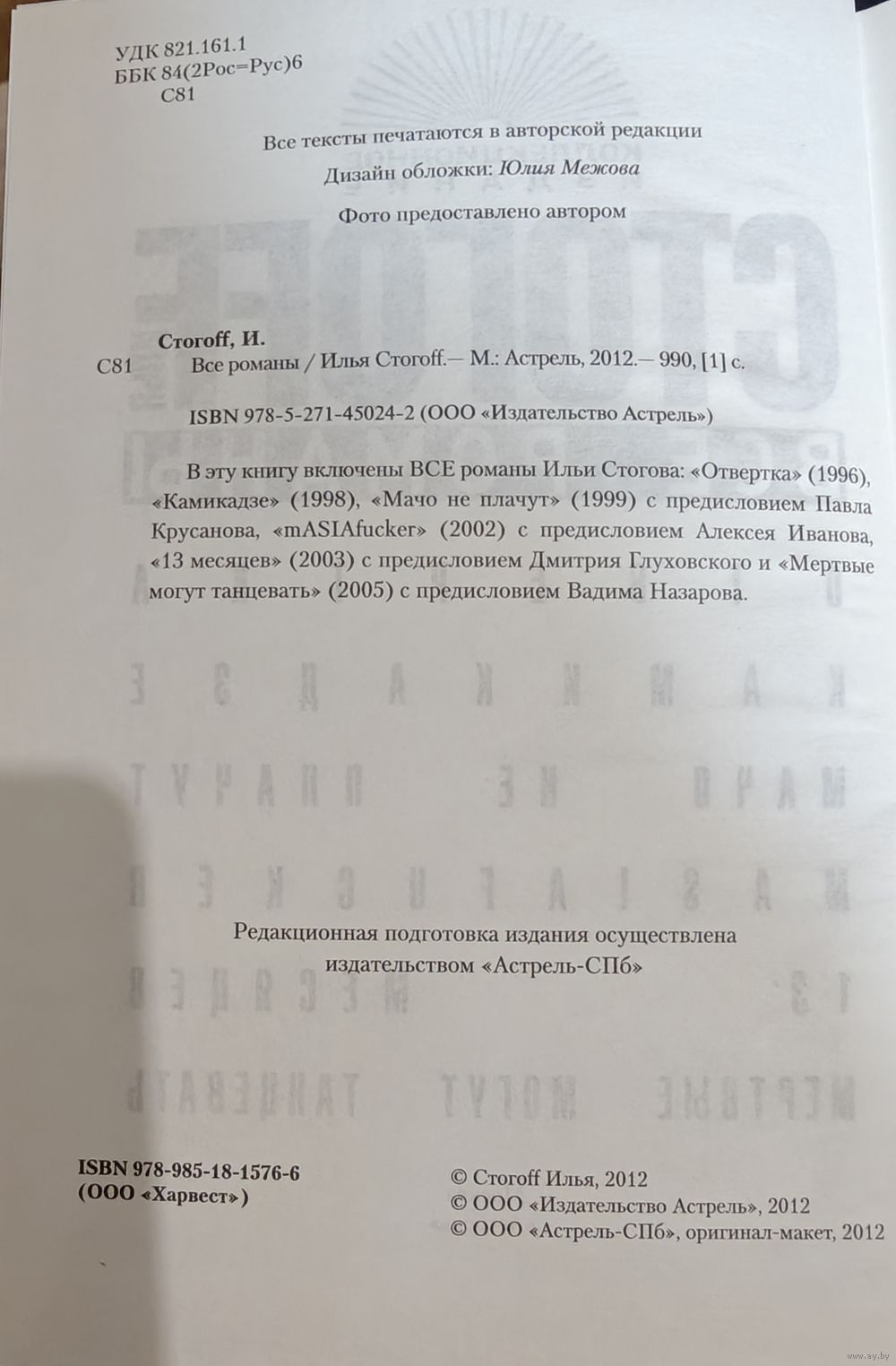 В эту книгу включены все романы Ильи Стогова: "Отвертка" (1996), "Камикадзе" (1998), "Мачо не плачут" (1999) с предисловием Павла Крусанова, "mASIAfucker" (2002) с предисловием Алексея Иванова, "13 месяцев" (2003) с предисловием Дмитрия Глуховского и "Мертвые могут танцевать" (2005) с предисловием Вадима Назарова.