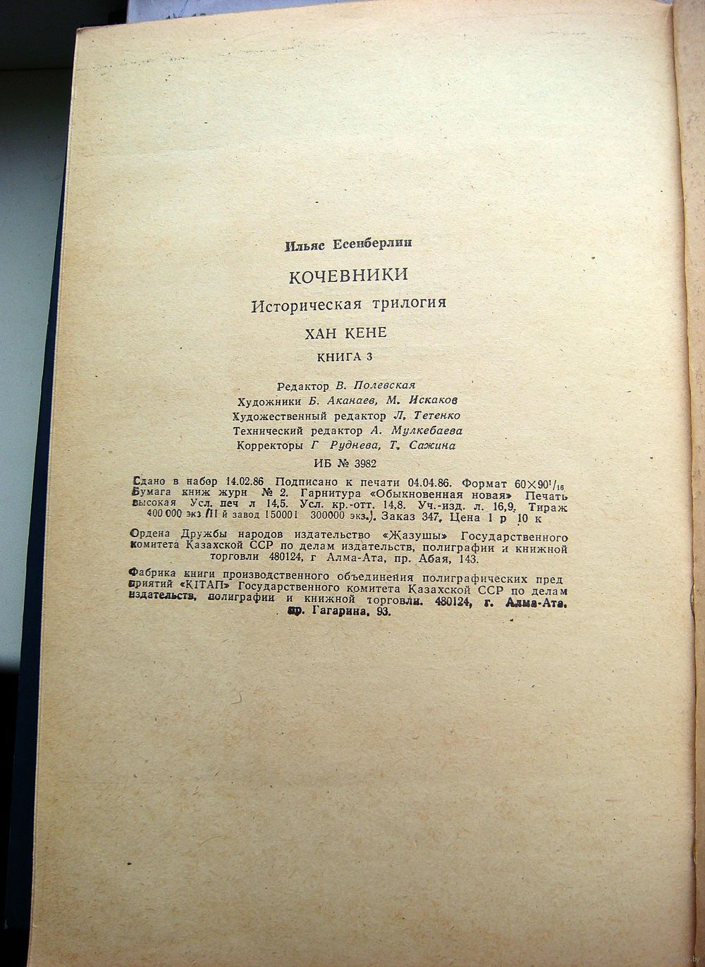 Издательство "Жазуши" Госкомитета Казахской ССР по делам издательств, г. Алма-Ата, 1986 год.