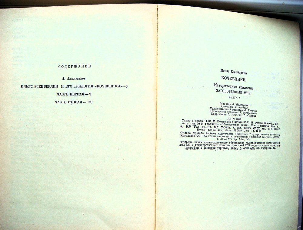 Издательство "Жазуши" Госкомитета Казахской ССР по делам издательств, г. Алма-Ата, 1986 год.