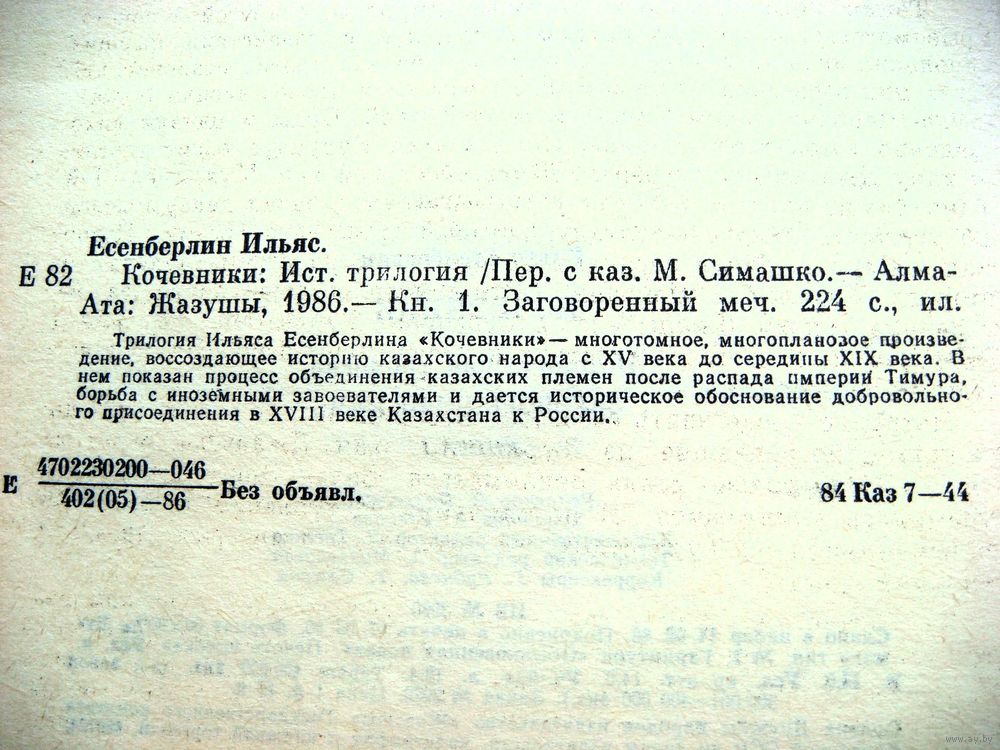 Издательство "Жазуши" Госкомитета Казахской ССР по делам издательств, г. Алма-Ата, 1986 год.
