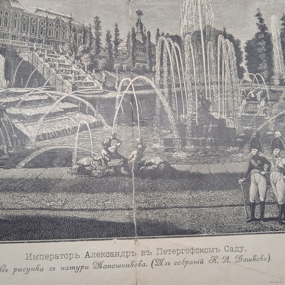 Императоръ Александръ въ Петергофскомъ Саду. Гравюра энциклопедическая 19-20век. 34х25см. СПБ. РАСПРОДАЖА КОЛЛЕКЦИИ.